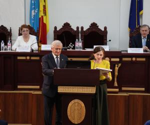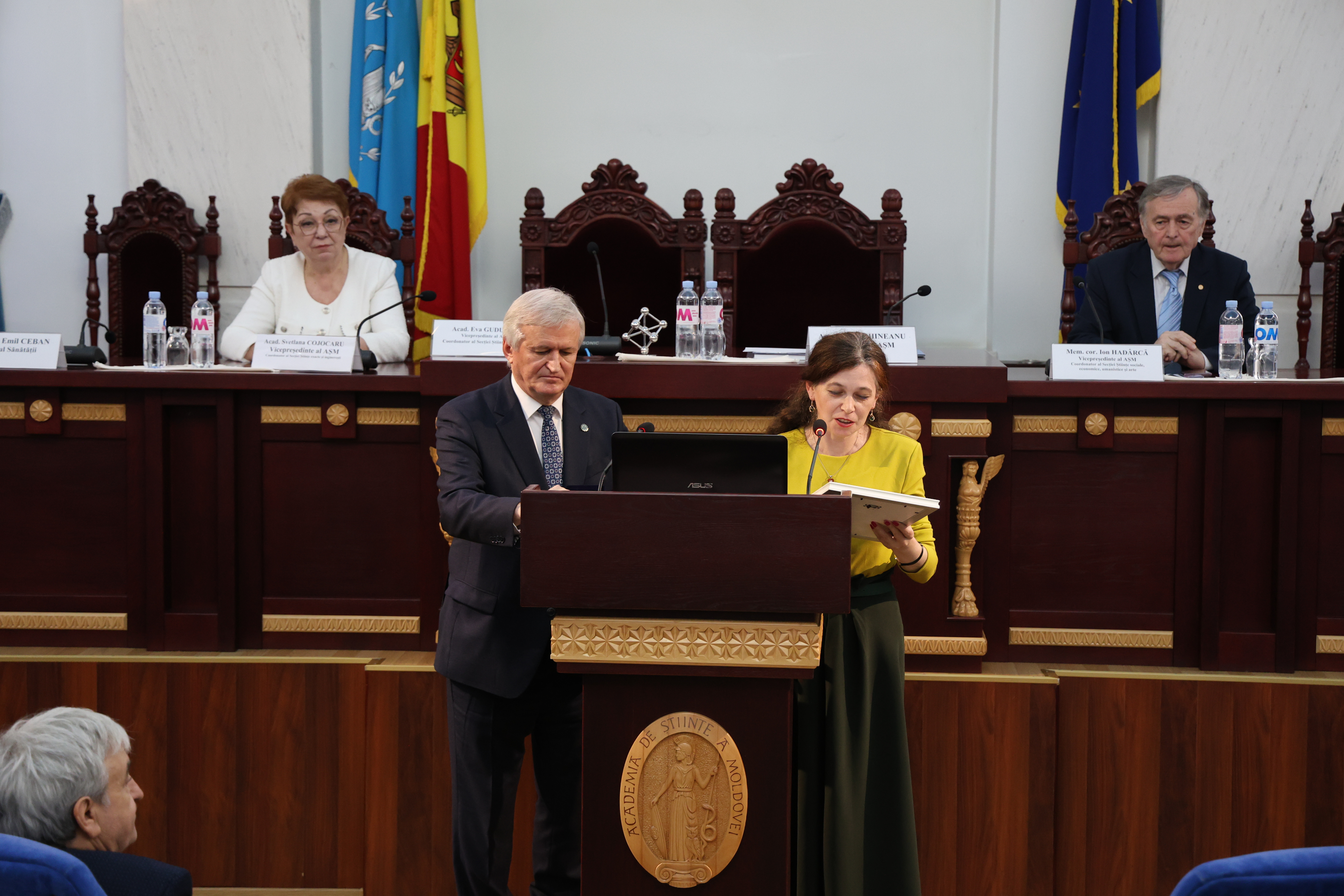 Tot în cadrul evenimentului, acad. Ion TIGHINEANU a dat citire unui mesaj de salut transmis de domnul Dan PERCIUN, ministrul Educației și Cercetării, în care a fost apreciată contribuția comunității academice la dezvoltarea cercetării științifice, promovarea culturii naționale și consolidarea dialogului dintre știință, educație și societate.