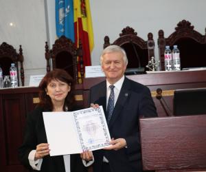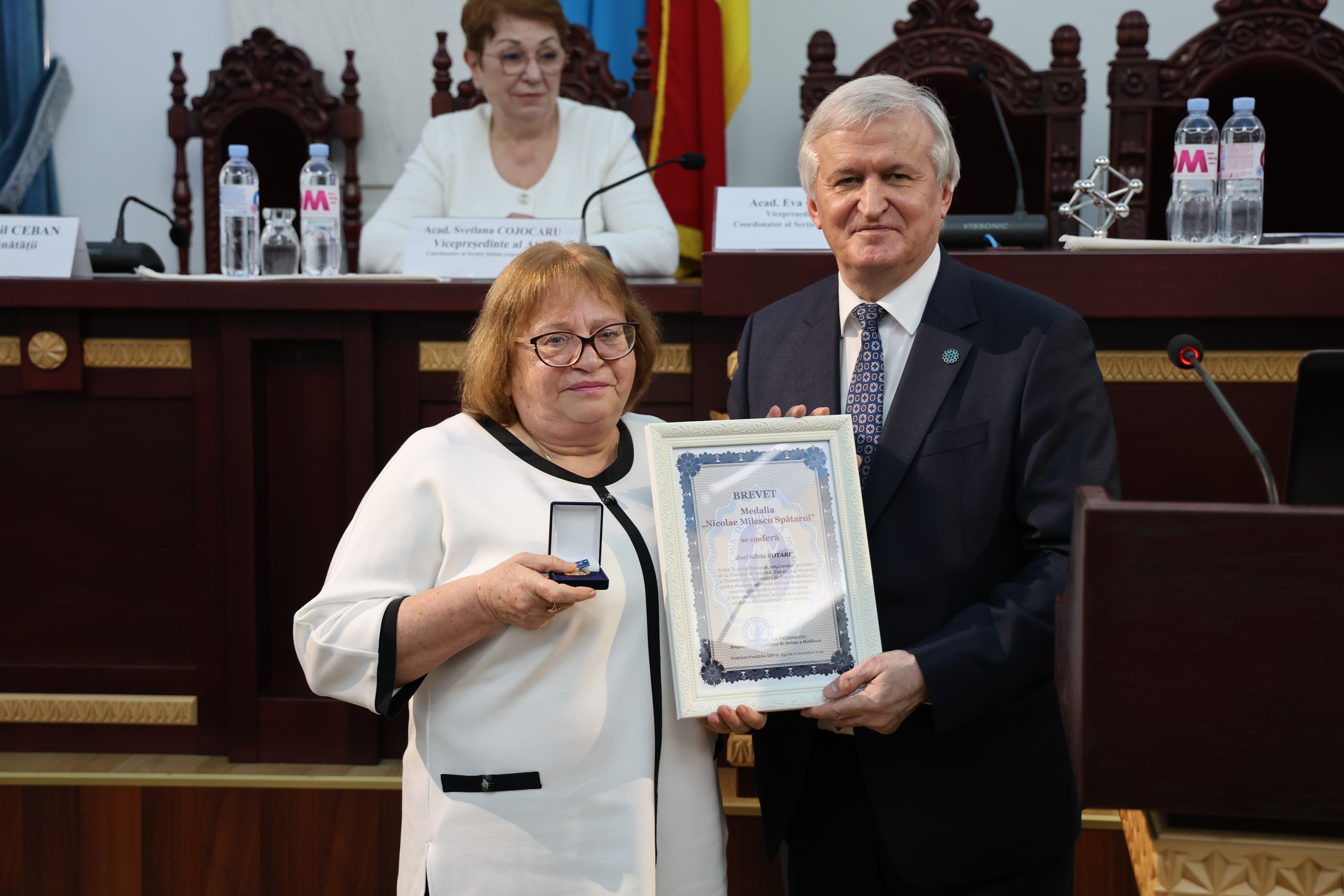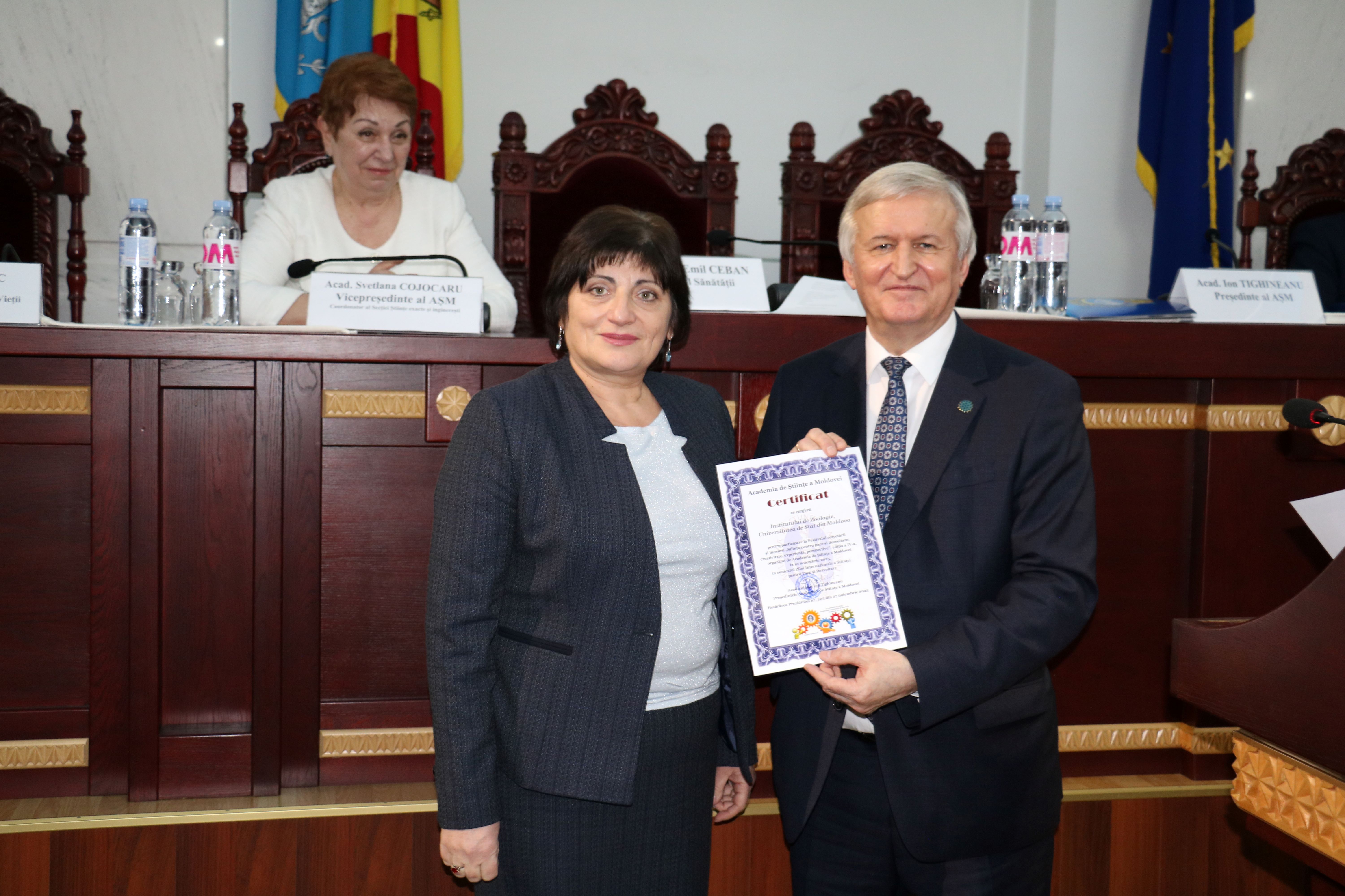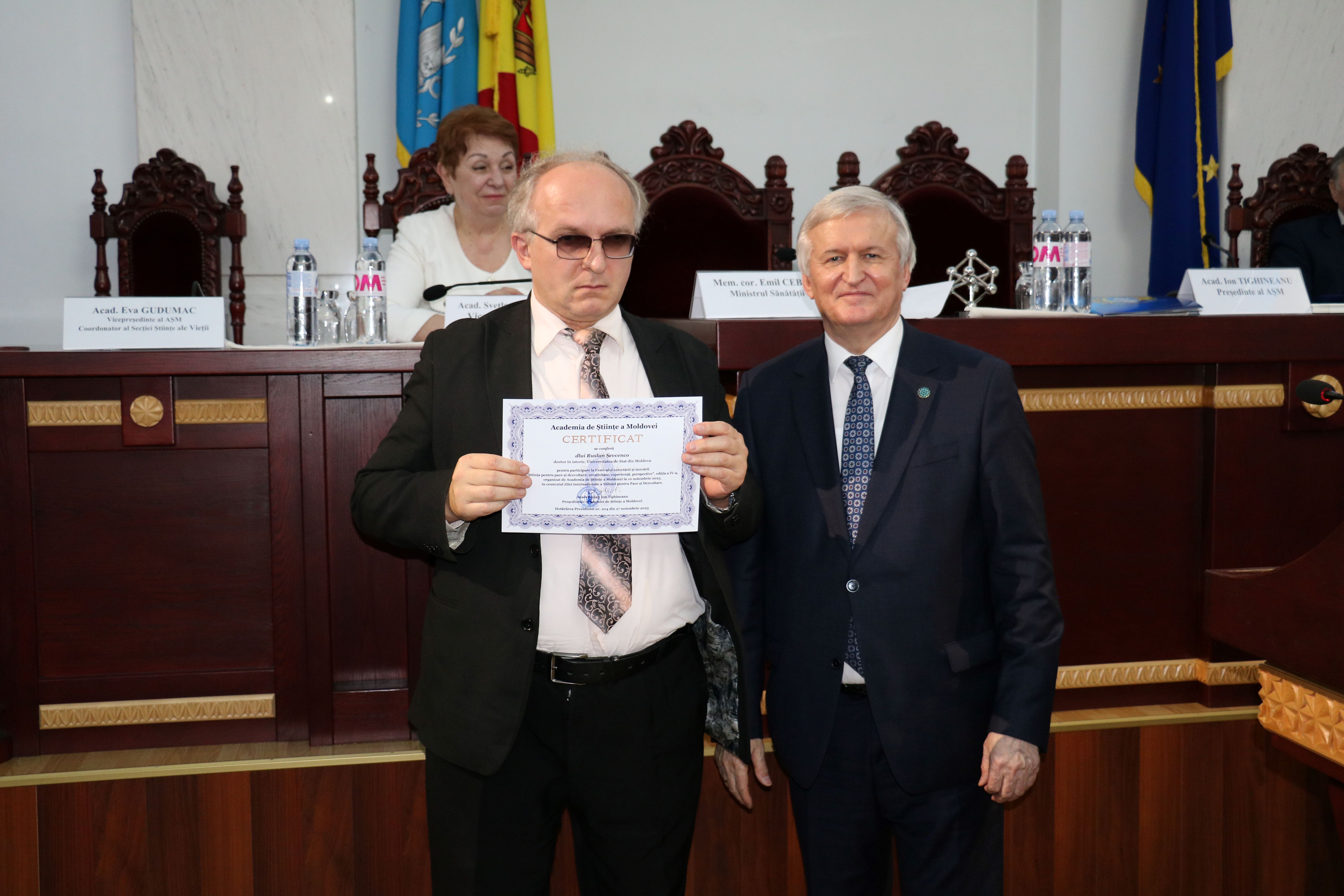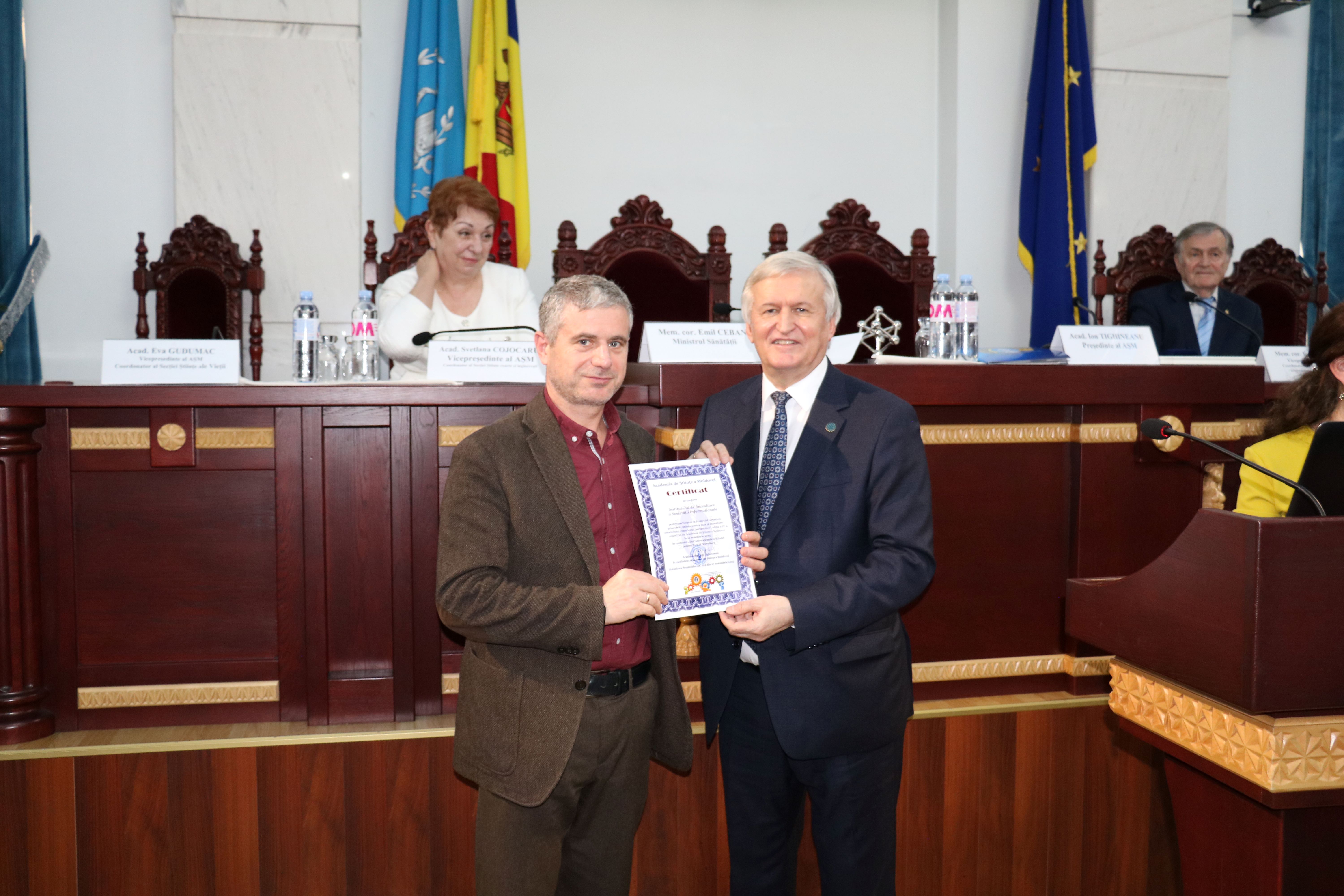 De asemenea, distincția a fost conferită doamnei Marina FONARI, doctor în științe chimice, conferențiar cercetător, cercetător științific coordonator și domnului Alexandr NATEPROV, doctor în științe fizico-matematice, cercetător științific coordonator al Laboratorului „Materiale pentru Fotovoltaice și Fotonică”, Institutul de Fizică Aplicată; doamnei Silvia ROTARI, doctor în științe biologice, conferențiar cercetător la Institutul de Genetică, Fiziologie și Protecție a Plantelor; domnului Adrian GHICOV, doctor habilitat în pedagogie, conferențiar universitar și șef al Catedrei de Limba și Literatura Română din cadrul Universității Pedagogice de Stat „Ion Creangă” din Chișinău.