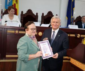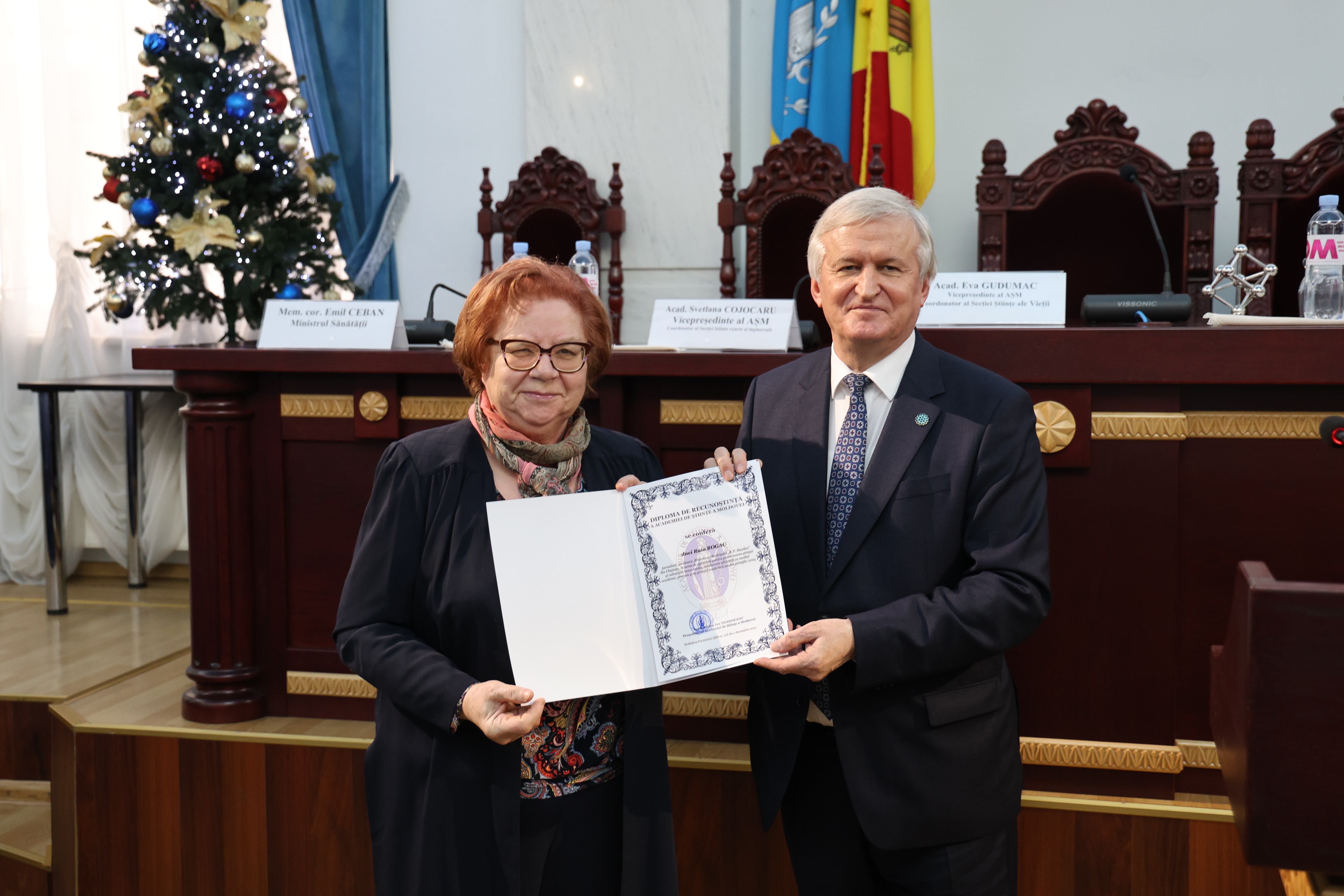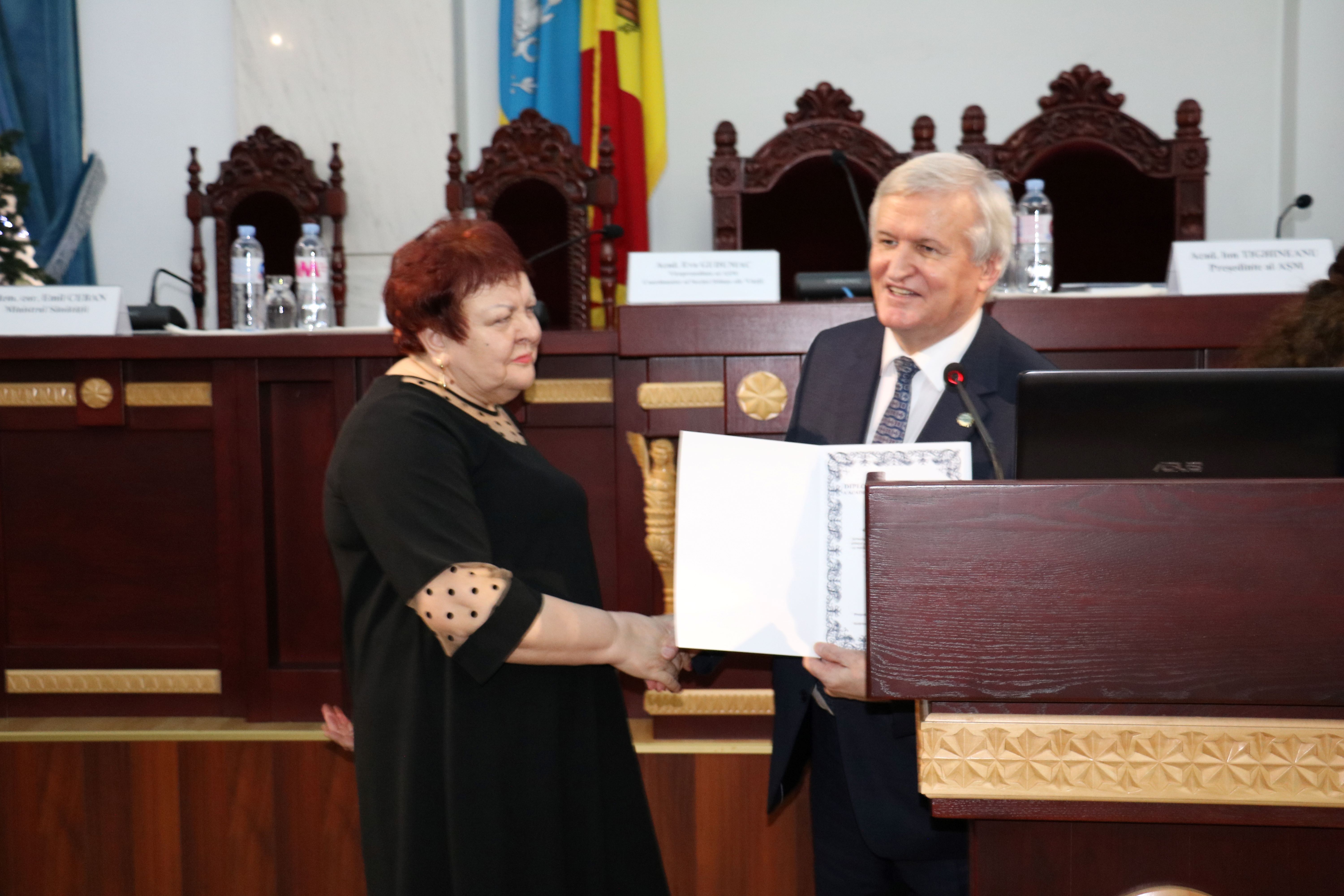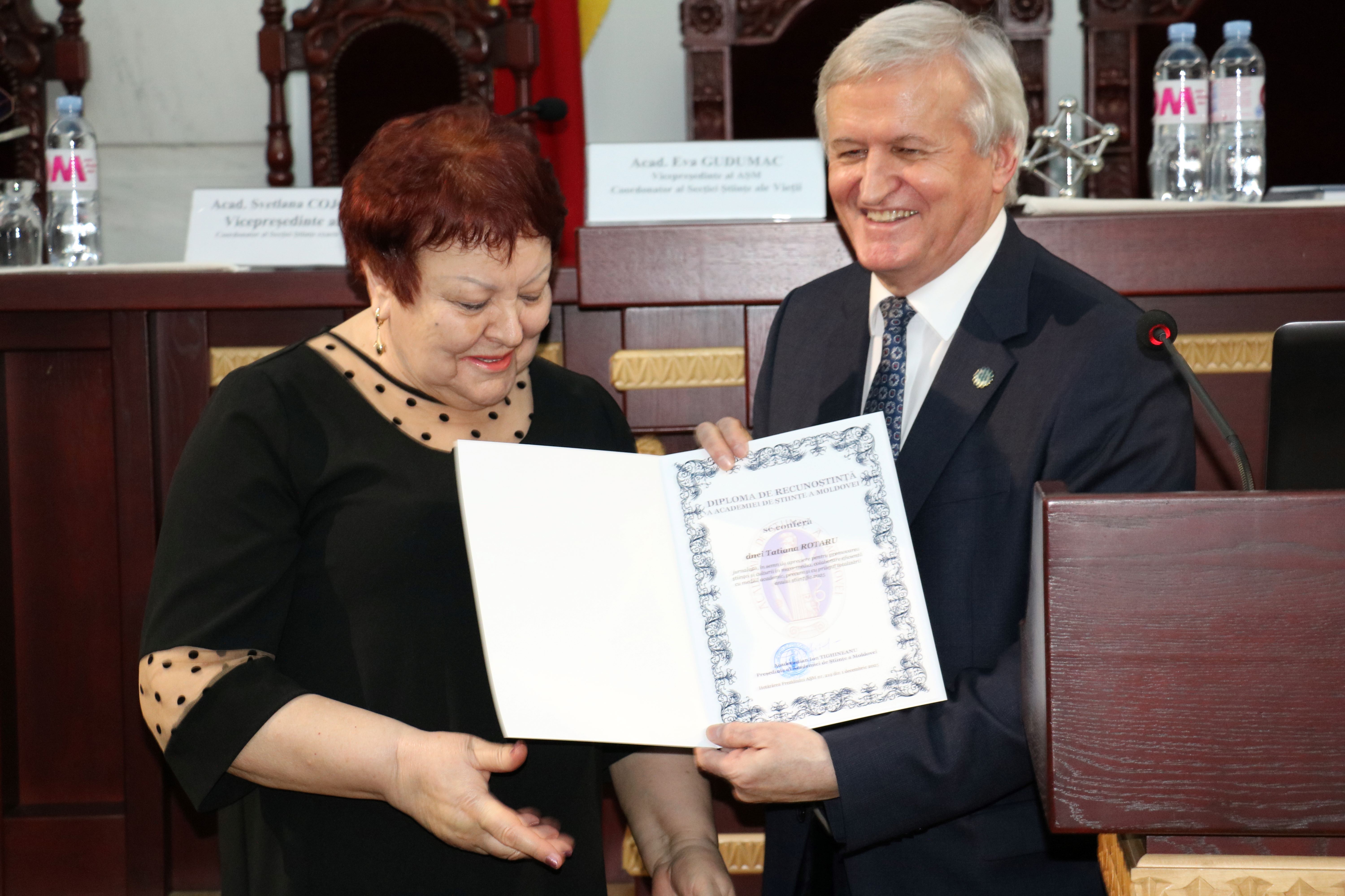 Doamnei Maria Grapini, europarlamentar, i-a fost conferită Diploma „Promotor al valorilor europene” pentru implicarea în susținerea valorilor spirituale și morale la nivel internațional, promovarea parcursului european al Republicii Moldova, organizarea unor manifestări dedicate Anului Mihai Eminescu și colaborarea fructuoasă cu AȘM.