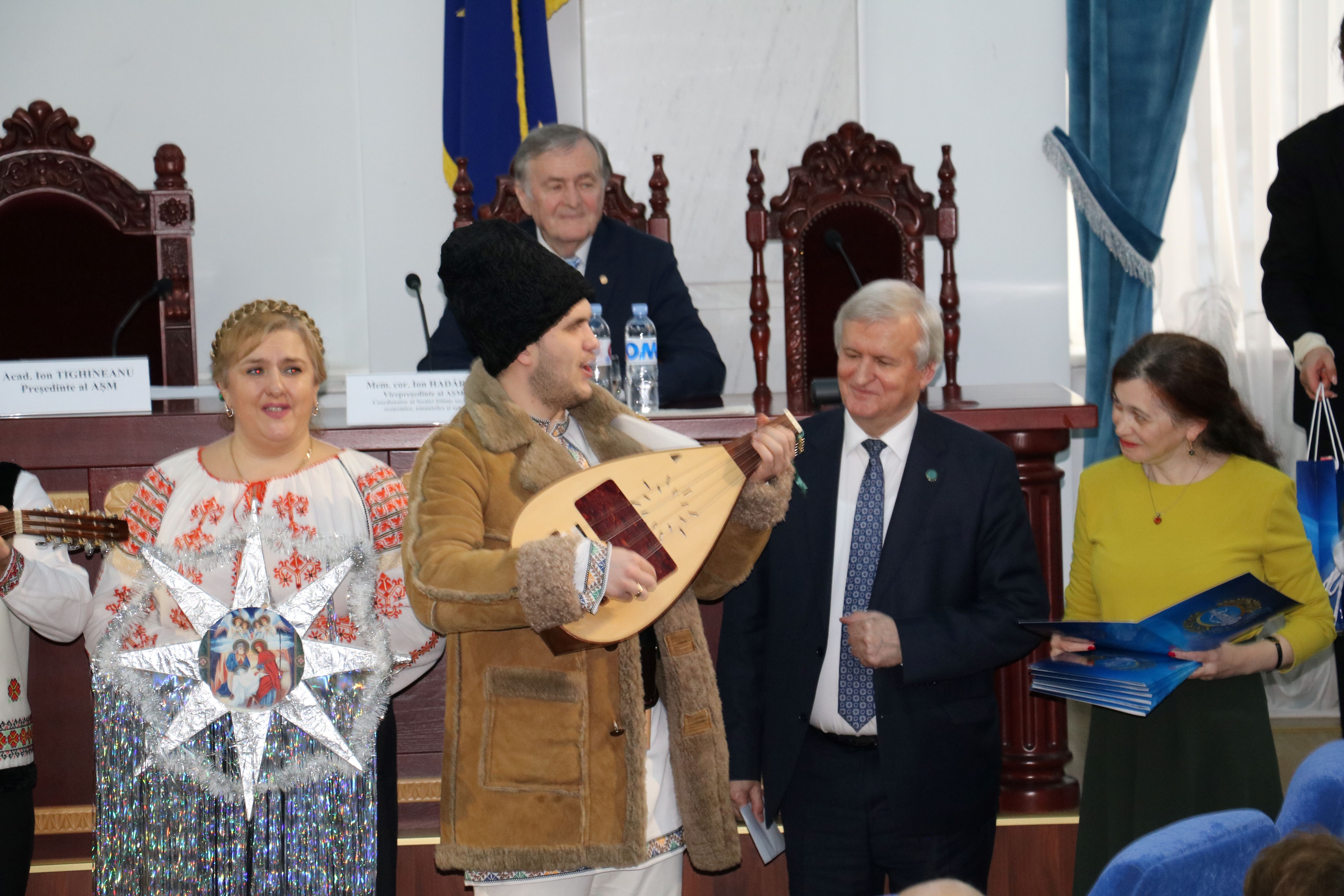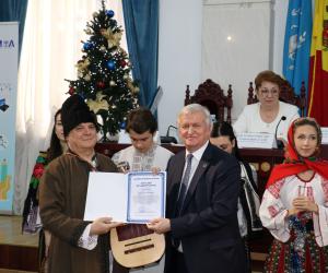 Evenimentul festiv a debutat cu programul de colinde și urături, susținut de Ansamblul Cobzarilor de la Academia de Muzică, Teatru și Arte Plastice, împreună cu Victor Botnaru, maestru în arte. Colectivul a fost distins cu Diplome de Gratitudine, în semn de recunoștință pentru activitatea desfășurată și pentru contribuțiile sale semnificative la promovarea valorilor naționale și a patrimoniului cultural românesc la nivel internațional. Distincția a fost acordată și în contextul includerii cobzei, la 10 decembrie 2025, în Lista reprezentativă a patrimoniului cultural imaterial al umanității UNESCO.