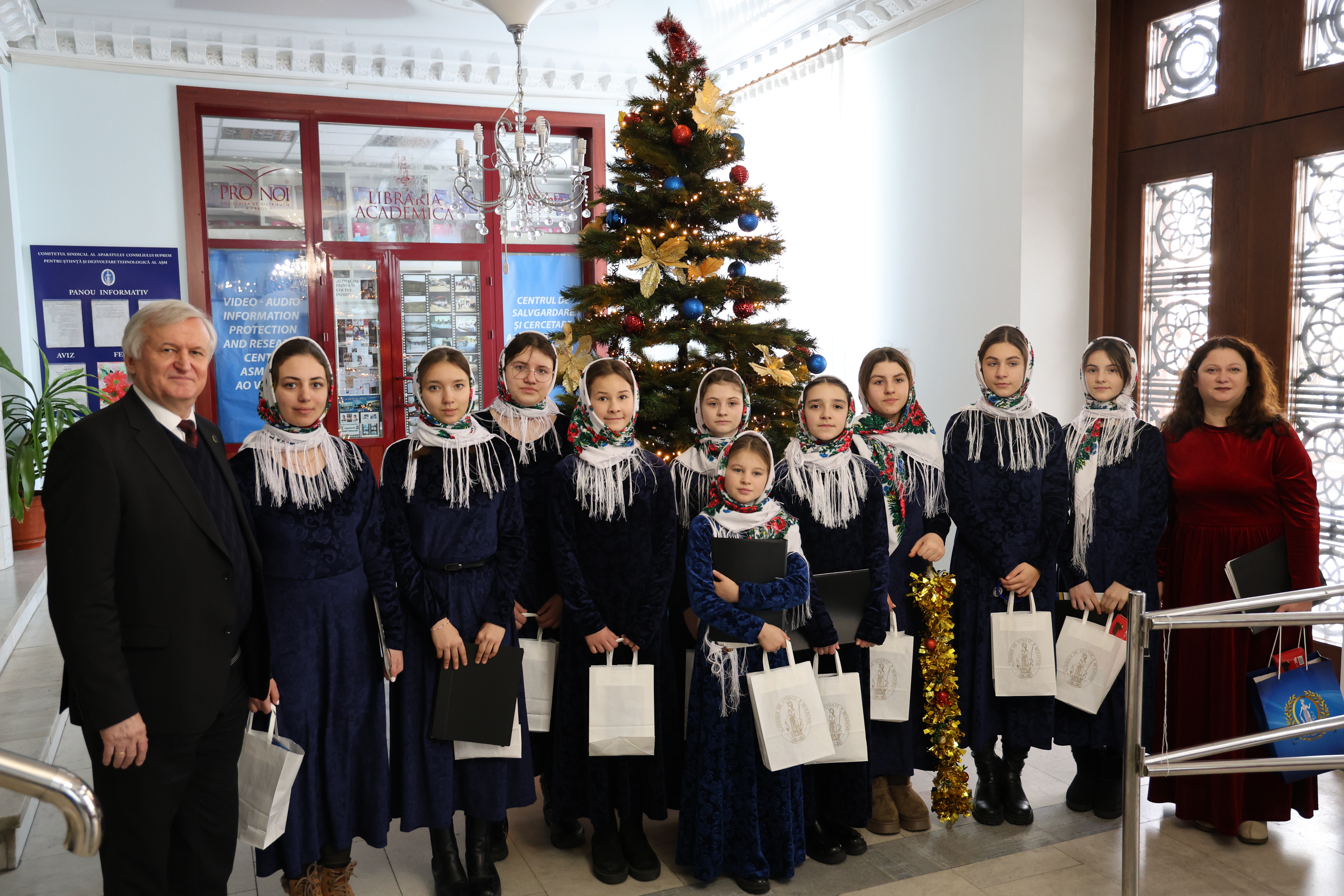 La 29 decembrie, sălile Academiei de Științe a Moldovei s-au umplut de colinde, emoție și spiritul Crăciunului, aduse cu sinceritate și căldură de copii. Instituția noastră a fost vizitată de corul de copii al bisericii „Sfânta Cuvioasa Parascheva de la Iași”, care activează în satul Ratuș, raionul Criuleni.