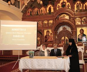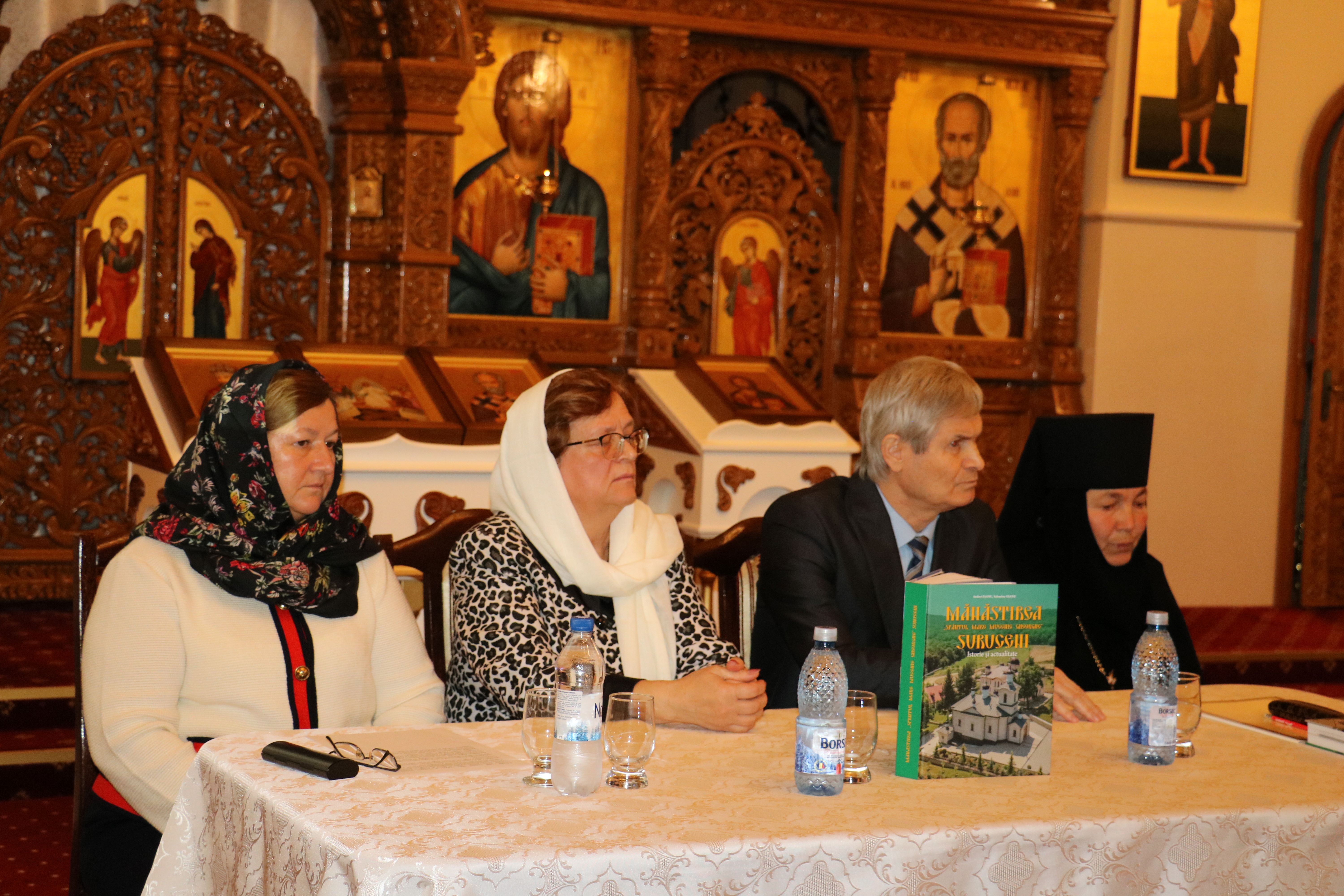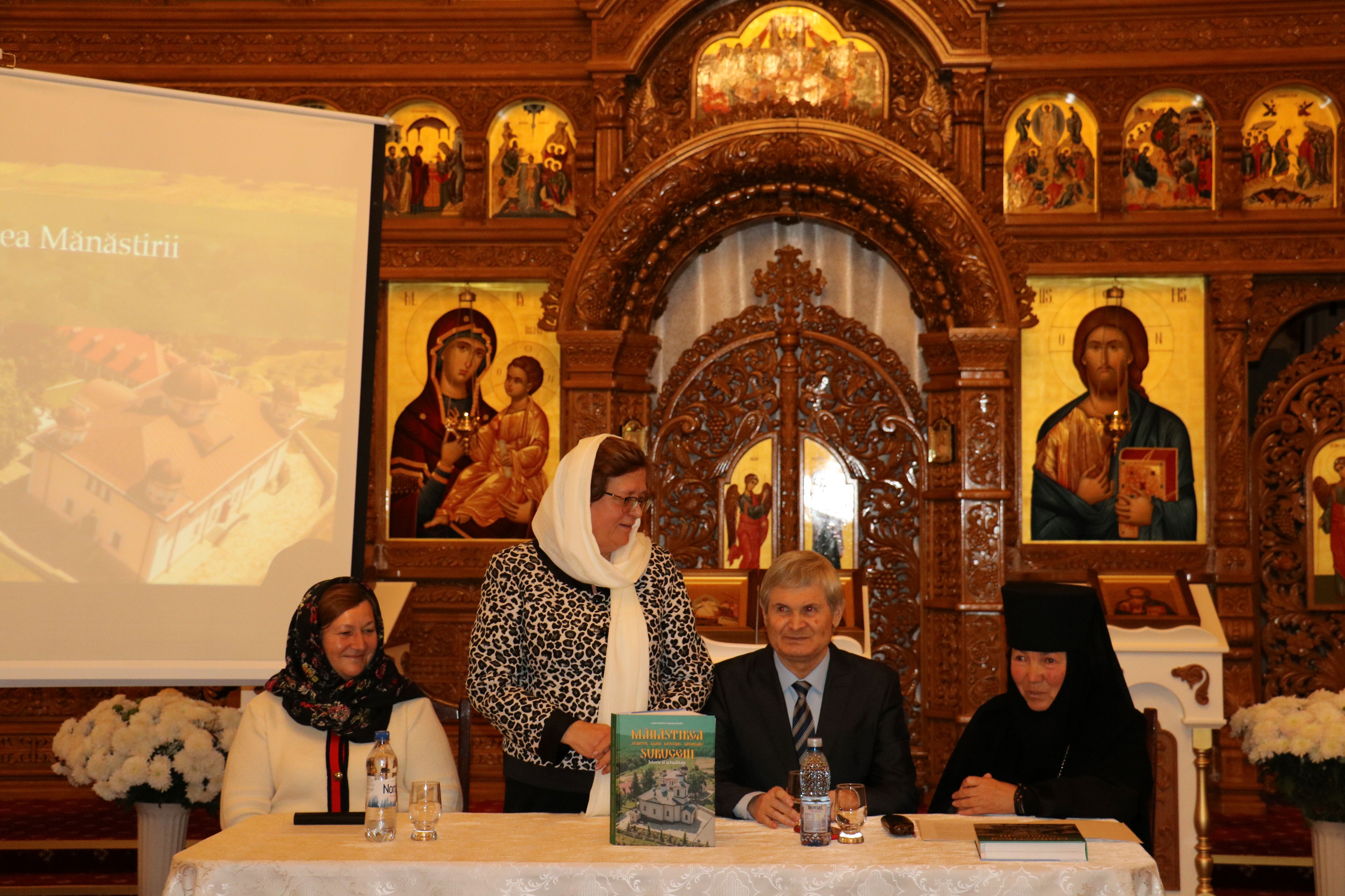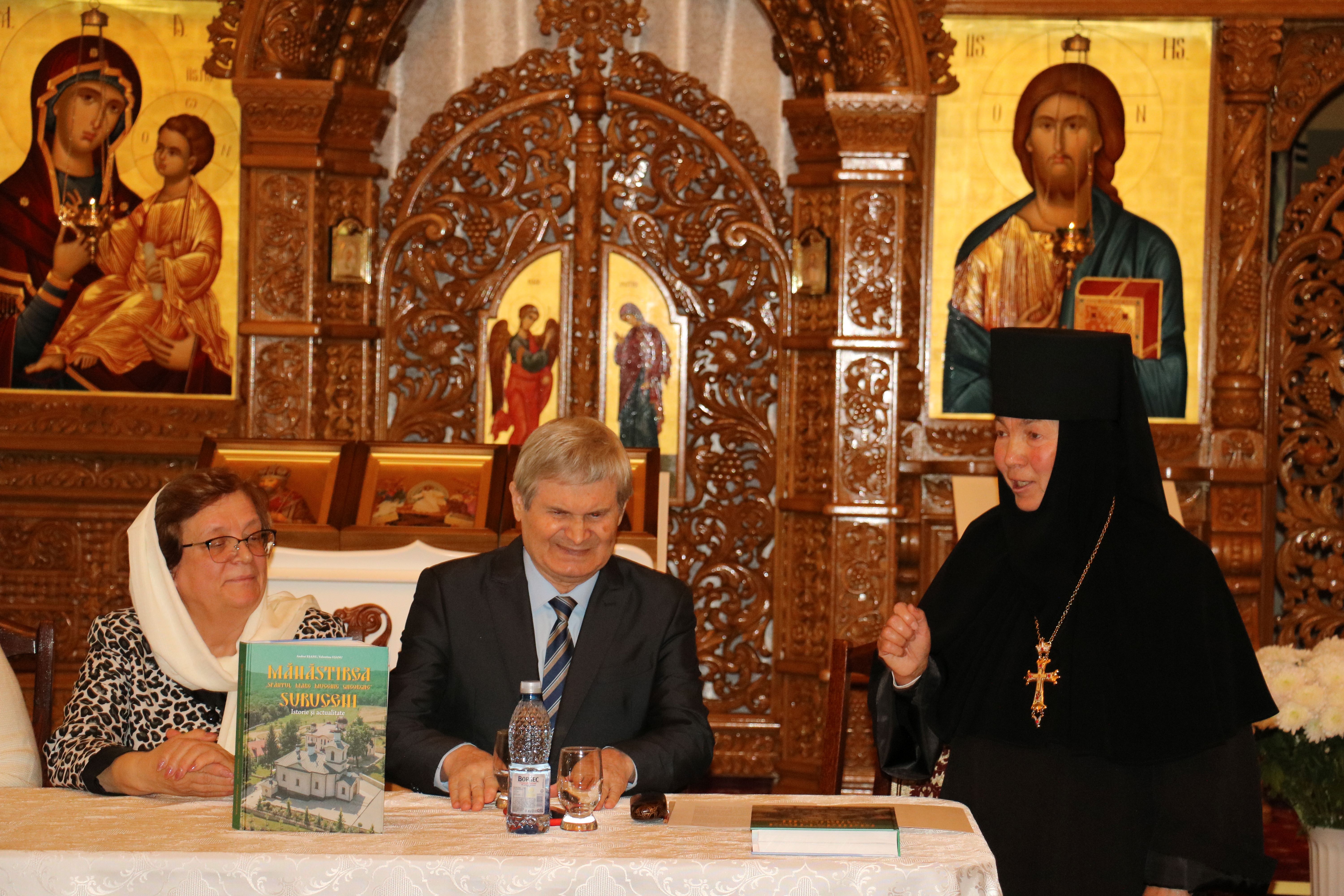 Evenimentul a fost deschis de egumena Epistemia (Goncearenco), stareța mănăstirii Sfântul Mare Mucenic Gheorghe, cea care a și redactat textul monografiei. Domnia sa a subliniat că cei 240 de ani de existență ai mănăstirii Suruceni reprezintă o „istorie vie a credinței, purtată prin jertfa și statornicia generațiilor de monahi”. Maica stareță Epistemia a mulțumit autorilor, maicilor și preoților slujitori pentru susținerea și munca lor de fiecare zi, precum și celor care au sprijinit editarea cărții în 1000 de exemplare, exprimând recunoștința față de doamna Ana Cecan, unul dintre ctitorii mănăstirii și cea care a moderat manifestarea științifico-spirituală.