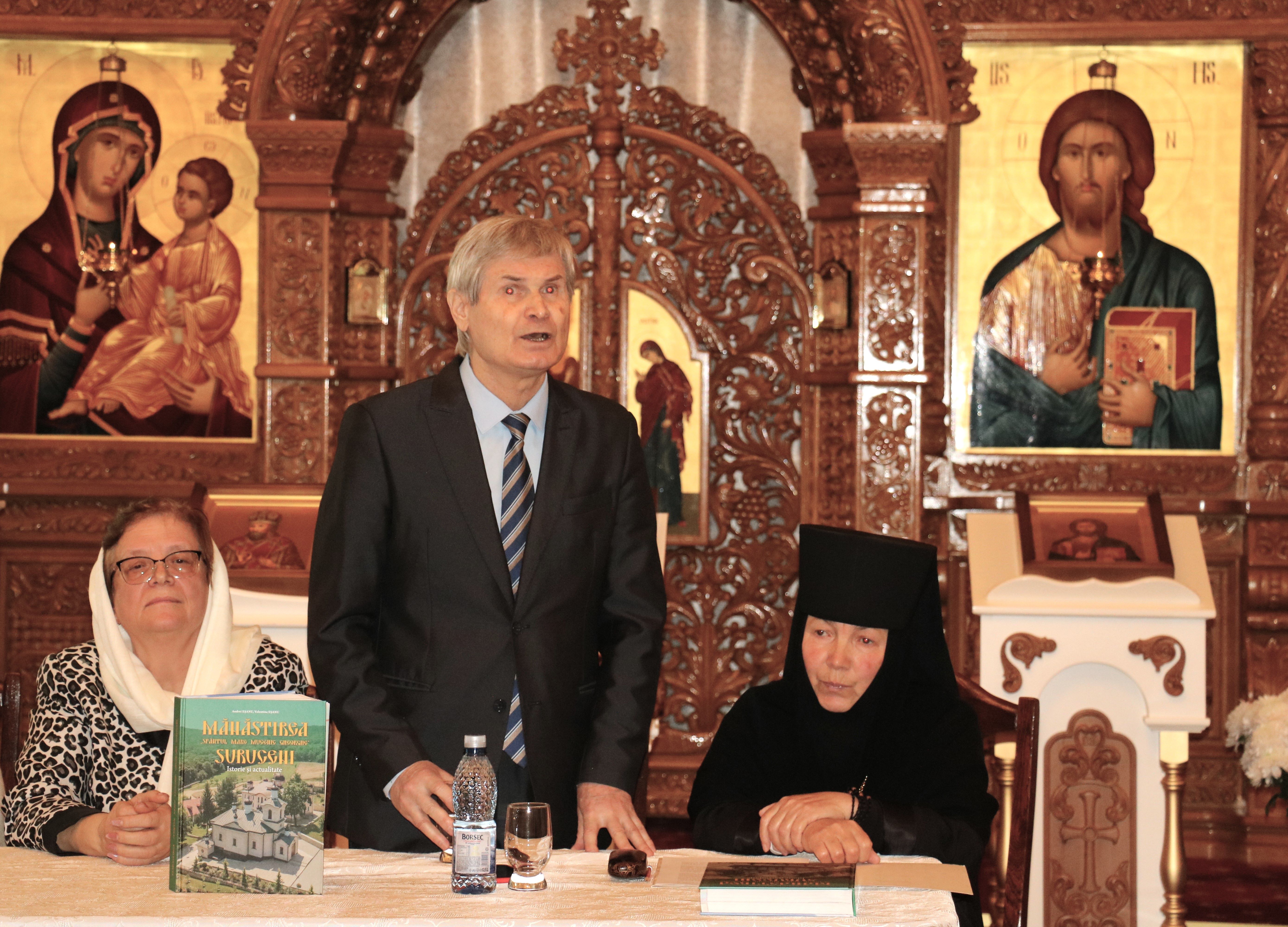 Dr. hab. Gheorghe Postică, membru de onoare al Academiei Române, cercetător științific la Muzeul Național de Istorie a Moldovei, a prezentat monografia, punctând pas cu pas devenirea și afirmarea lăcașului monahal, perioadele istorice zbuciumate prin care a trecut monahismul în RSS Moldovenească, ateismul ideologic al orânduirii sovietice, care făcea totul pentru a lipsi oamenii de credință. Istoricul și arheologul Gheorghe Postică a subliniat acuratețea și meticulozitatea cu care au lucrat autorii acad. Andrei Eșanu și dr. Valentina Eșanu cu documentele de diferit tip pentru a prezenta un tablou de ansamblu privind evoluția mănăstirii Suruceni de-a lungul anilor. Astfel, cei doi istorici au urmărit începuturile și evoluția așezământului monahal, din perspectiva contextului istoric și a documentelor de arhivă, au precizat rolul său actual în viața Bisericii și a societății.