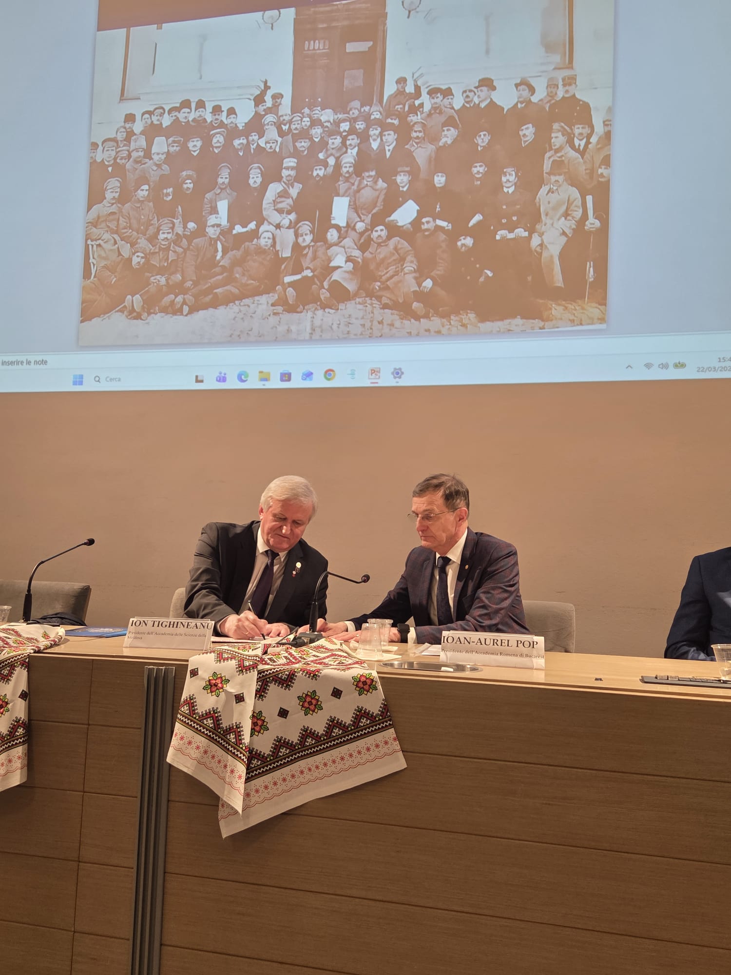 Președintele Academiei de Științe a Moldovei acad. Ion Tighineanu și președintele Academiei Române acad. Ioan-Aurel Pop au fost invitații de onoare la simpozionul prilejuit de marcarea a celor 108 ani de la împlinirea momentului istoric al Unirii Basarabiei cu România cu genericul „Unirea Basarabiei cu România în 1918, expresie a unităţii şi identităţii românilor”. Evenimentul a avut loc la 22 martie 2026 în Sala delle Accademie a Bibliotecii Ambrosiana din Milano, Italia, consemnând primul pas fundamental întreprins pentru desăvârșirea României Mari. Manifestarea ştiinţifico-culturală a fost organizată de diaspora română din Milano, Centrul Cultural Italo-Român din Milano şi Institutul Român de Cultură şi Cercetare Umanistică de la Veneţia, în colaborare cu Biblioteca Ambrosiana.
