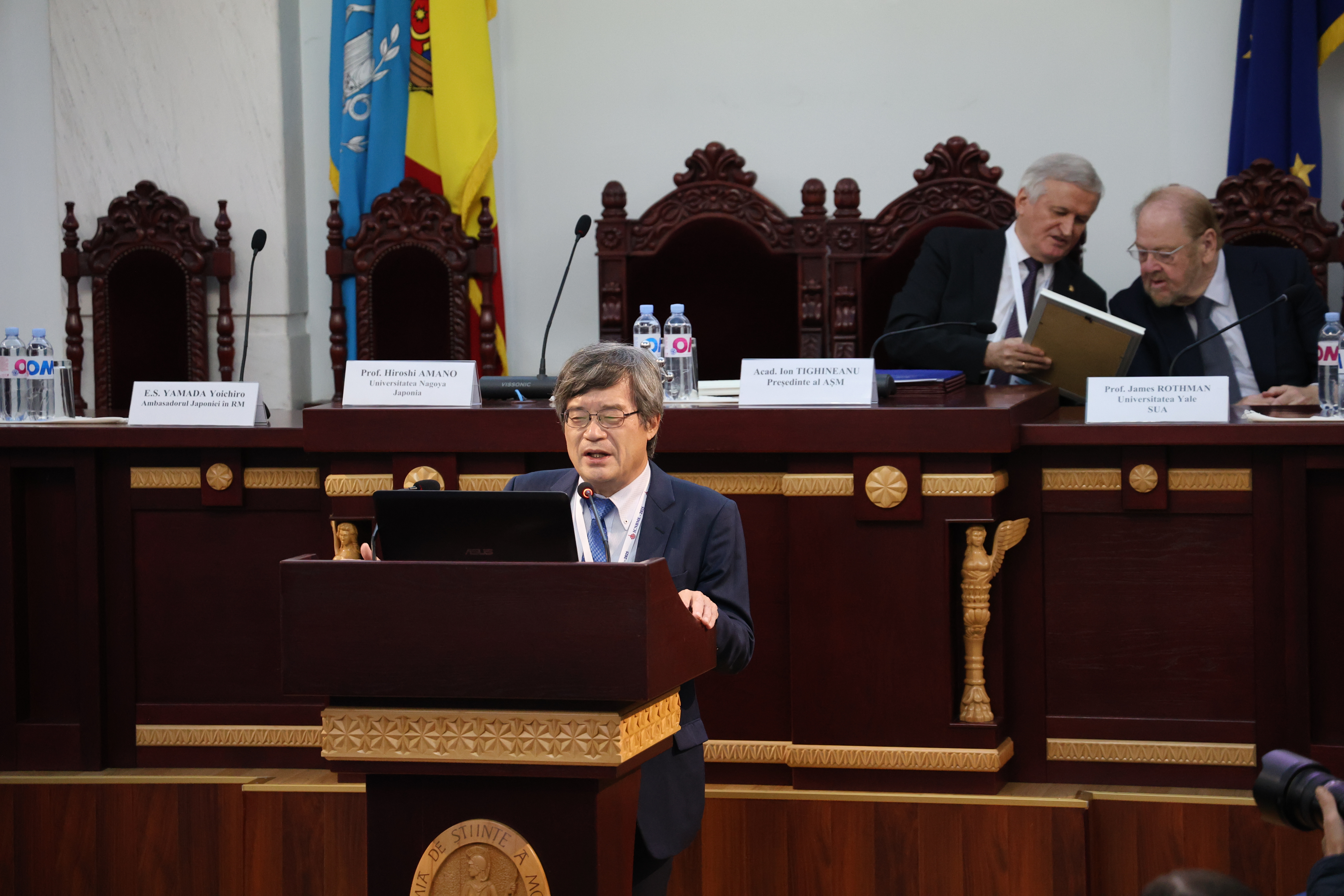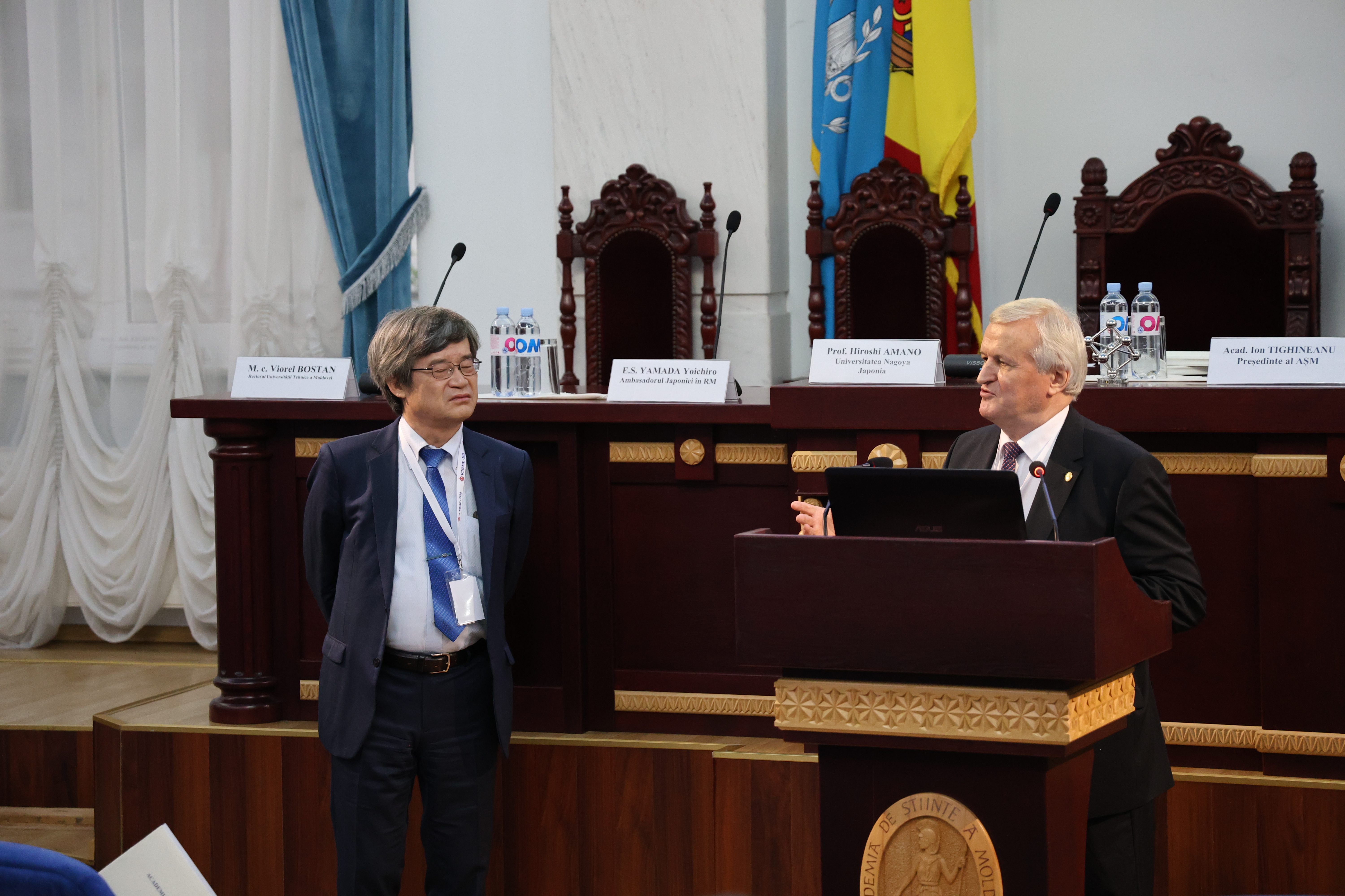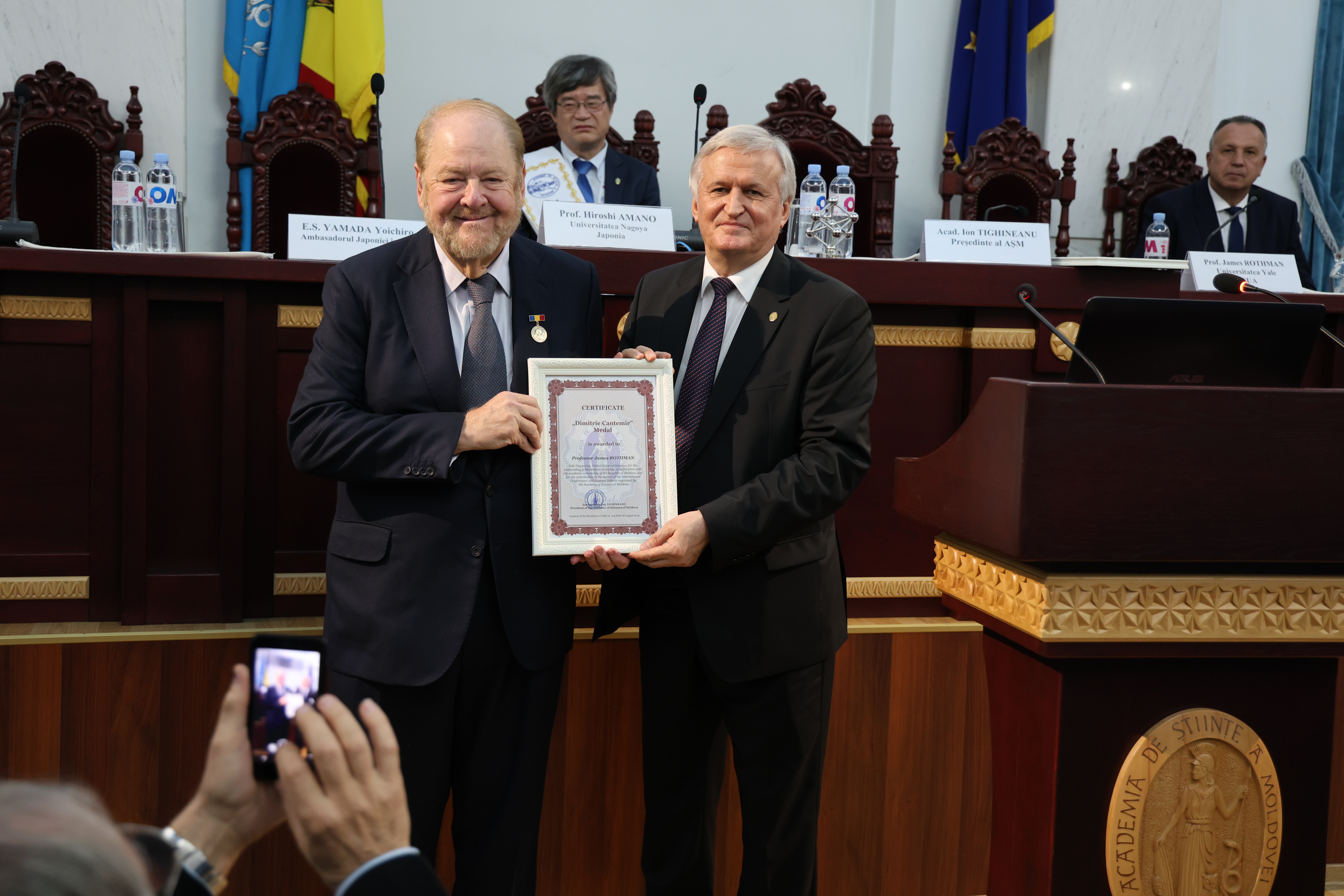 În cadrul evenimentului, a avut loc și ceremonia de înmânare a însemnelor de Membru de Onoare al AȘM profesorului Hiroshi AMANO și conferirea Medaliei „Dimitrie Cantemir” profesorului James ROTHMAN.
