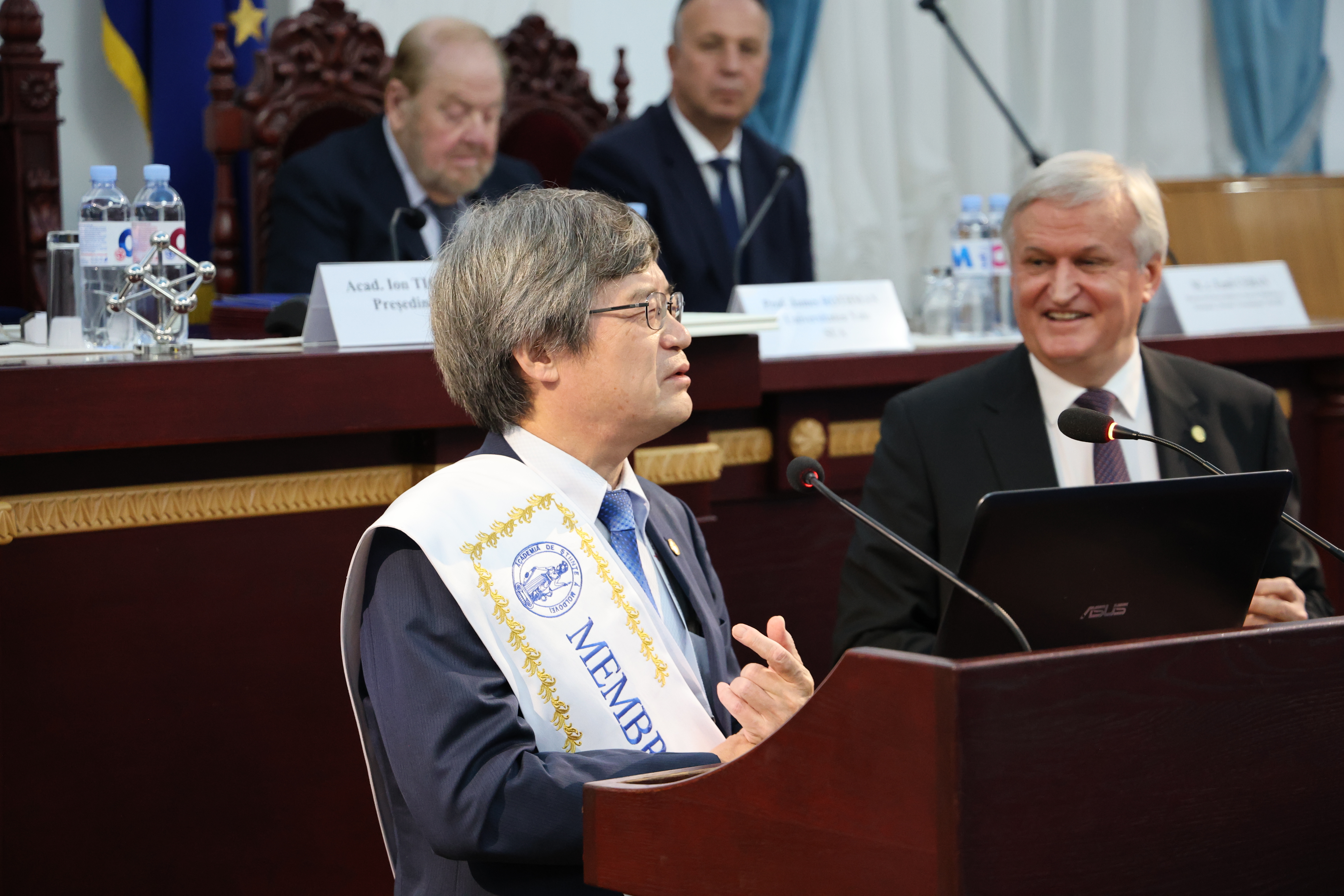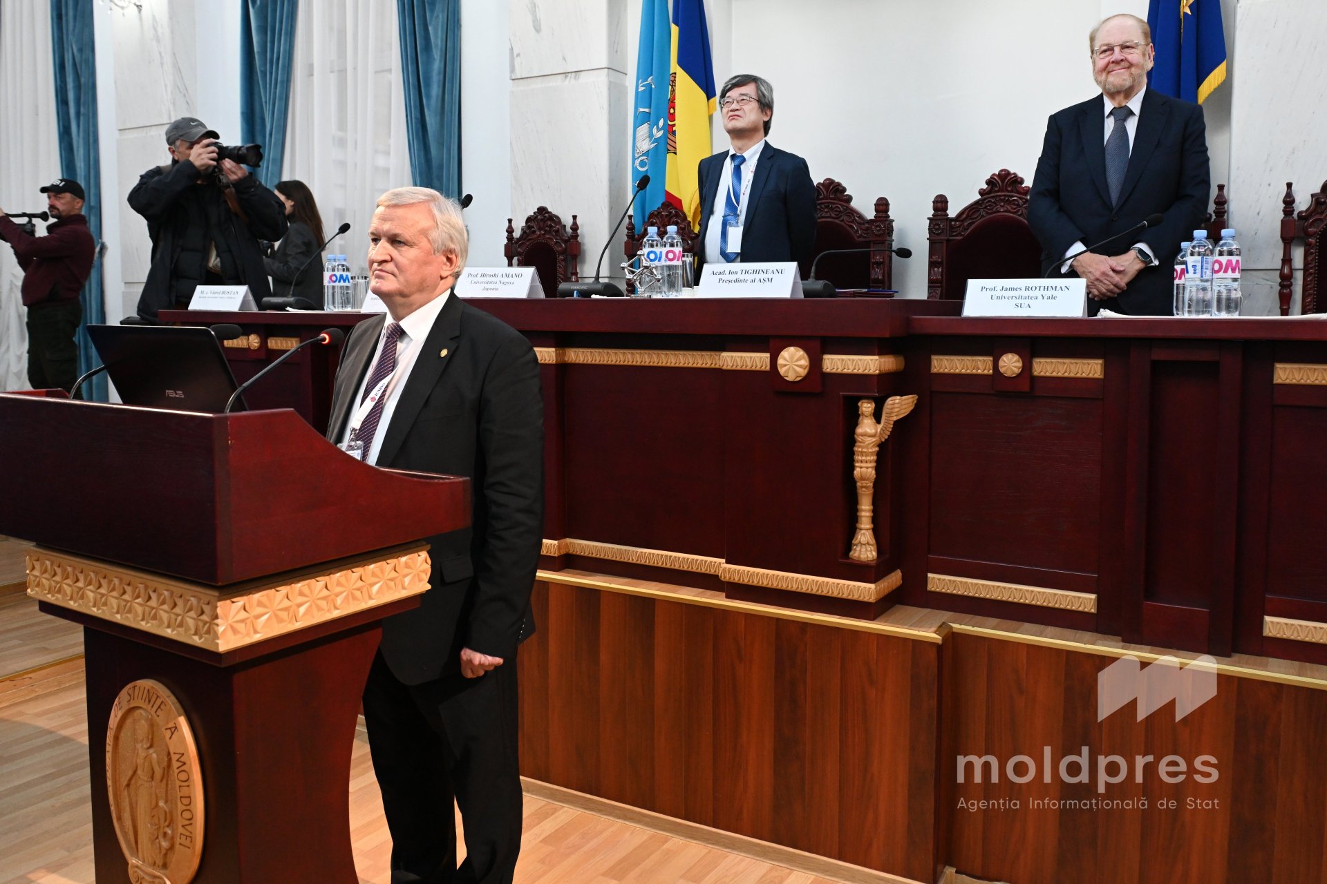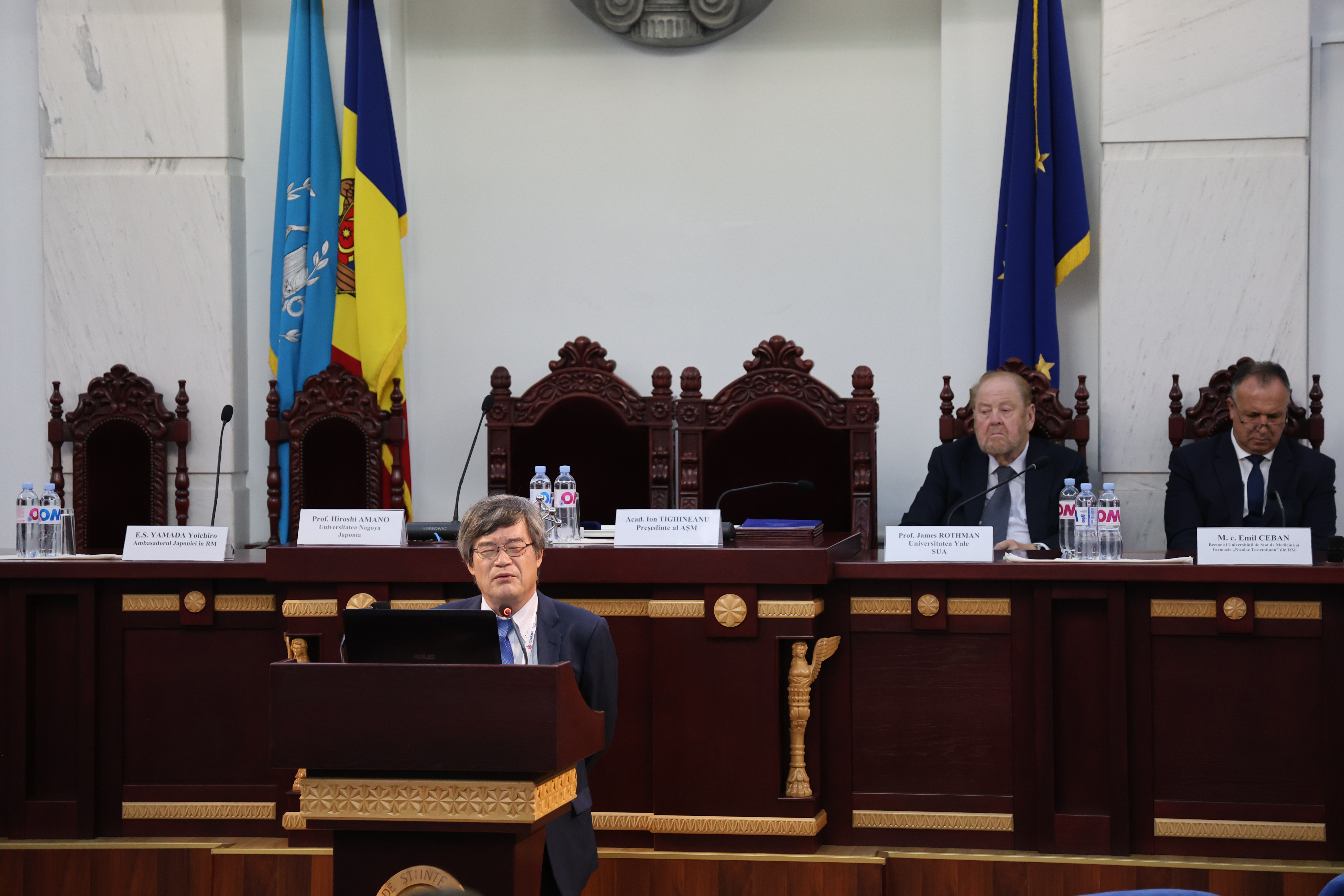 În cadrul evenimentului, a avut loc și ceremonia de înmânare a însemnelor de Membru de Onoare al AȘM profesorului Hiroshi AMANO și conferirea Medaliei „Dimitrie Cantemir” profesorului James ROTHMAN.