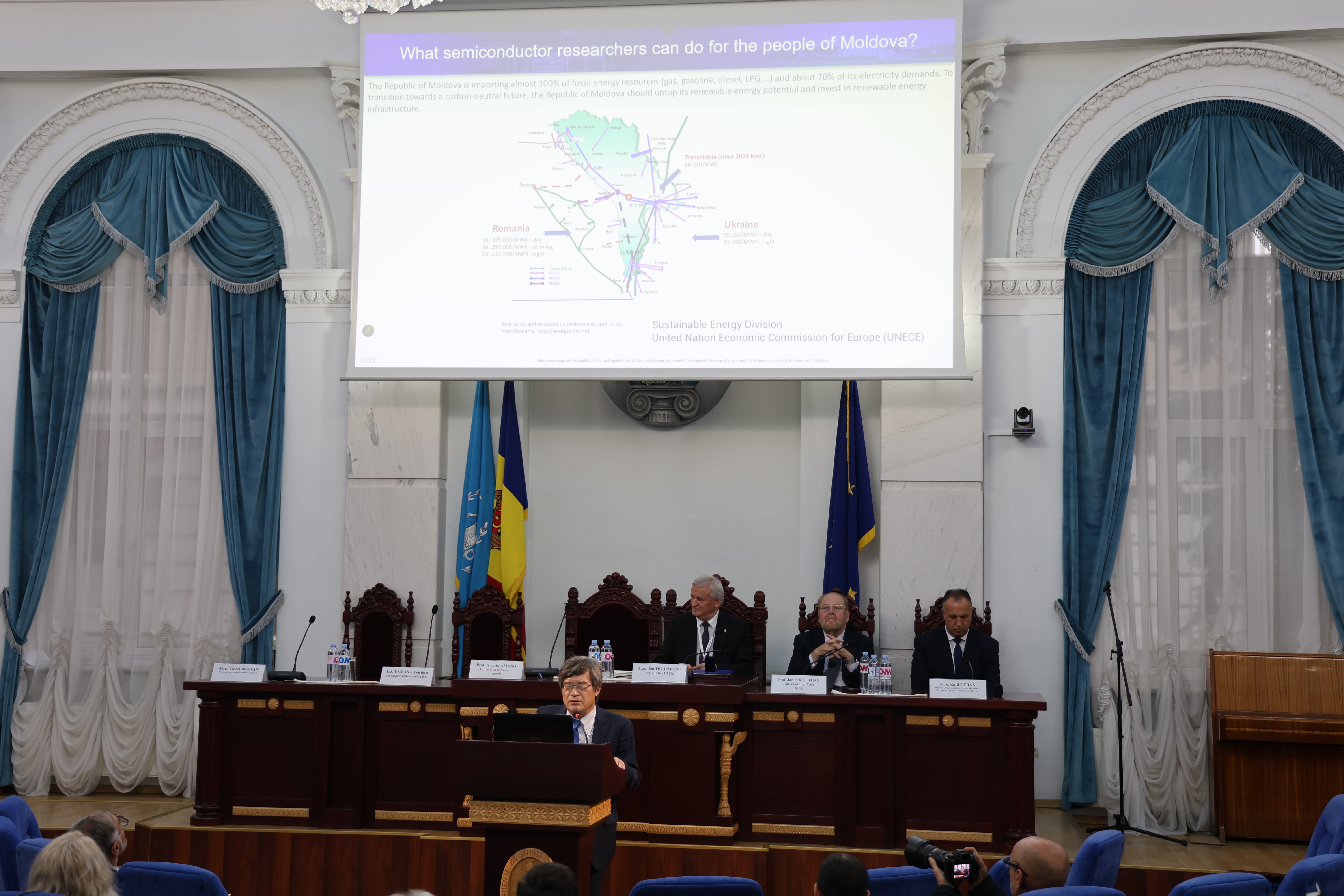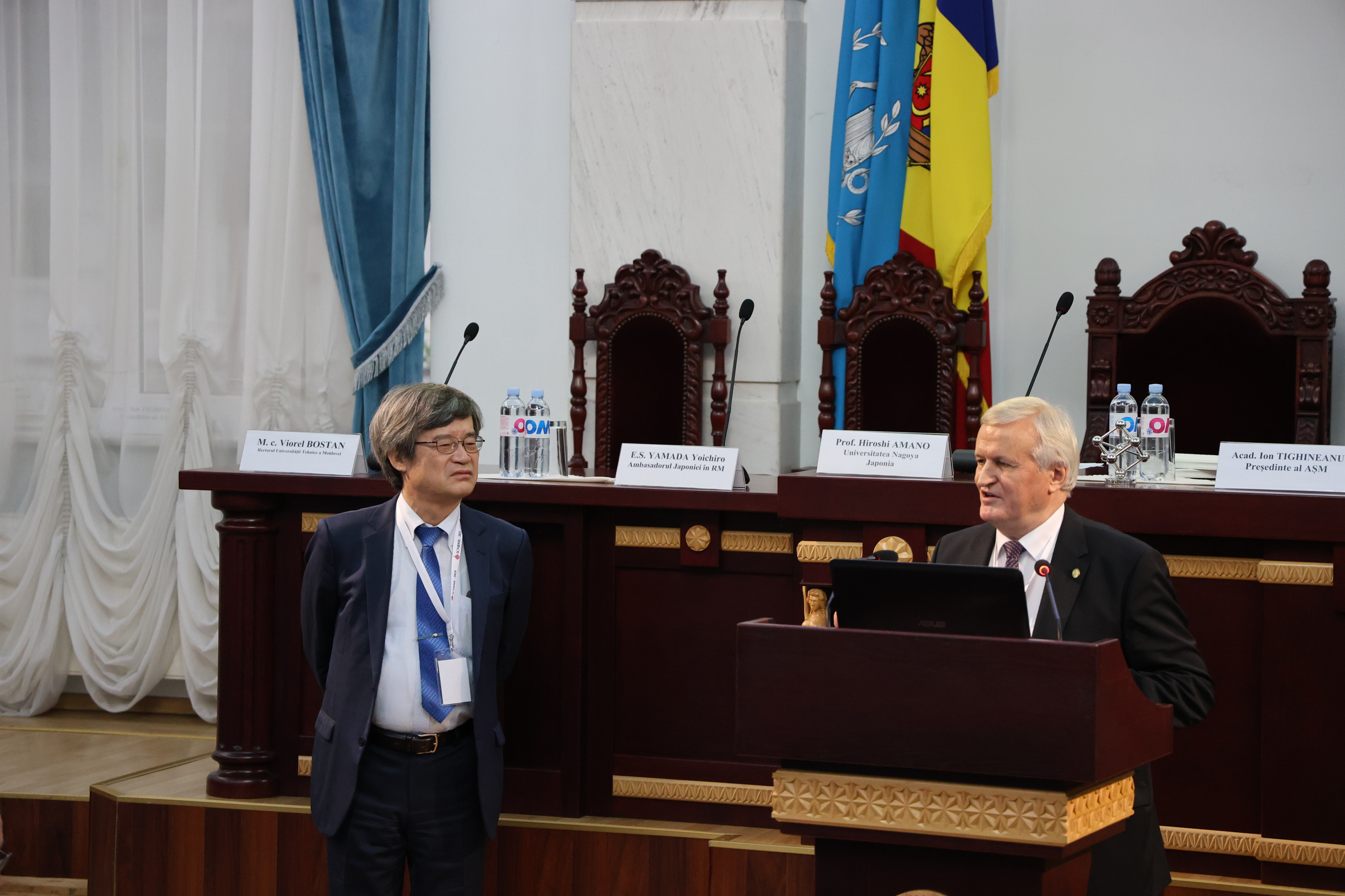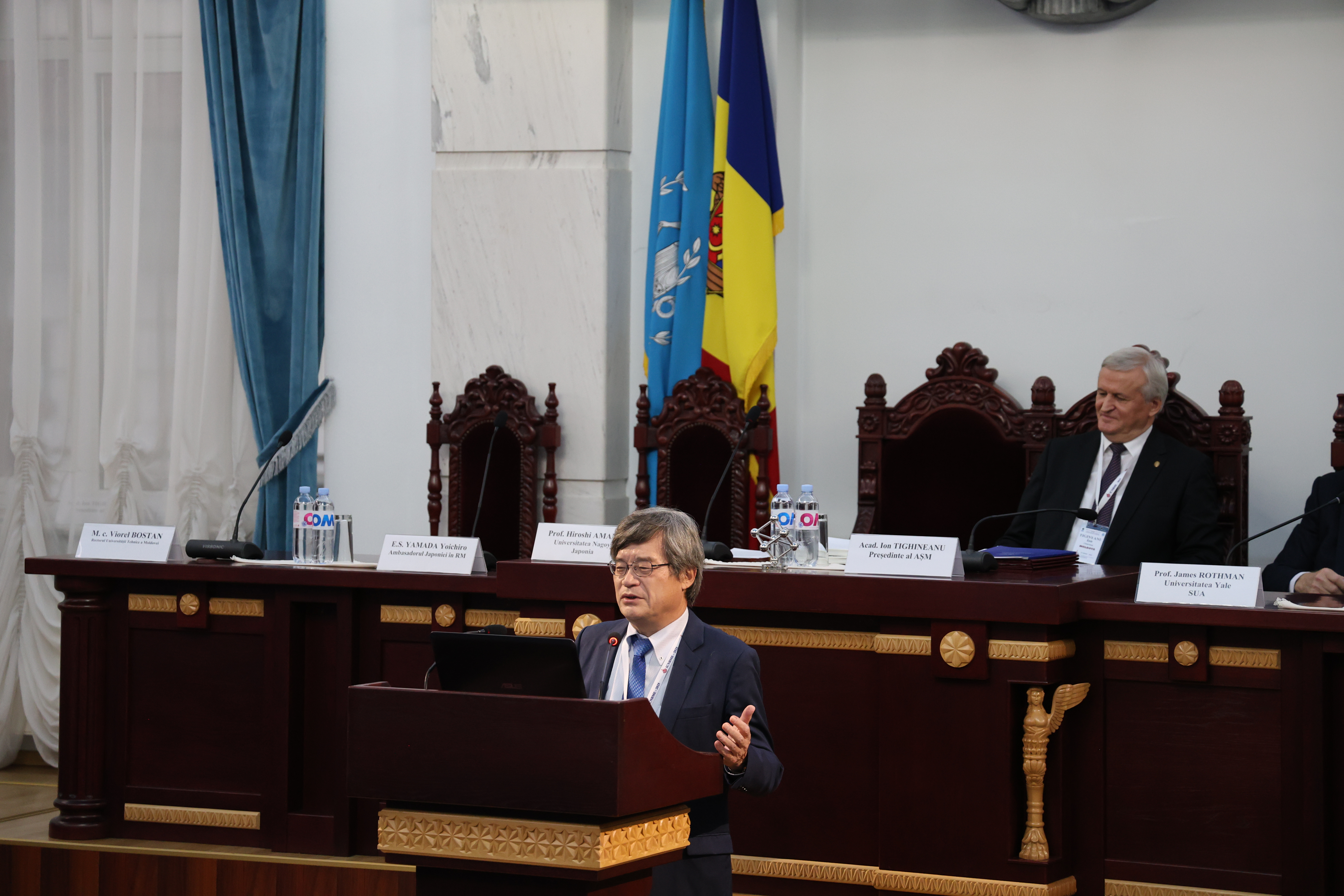 În discursul de deschidere a evenimentului, președintele Academiei de Științe a Moldovei, acad. Ion TIGHINEANU a salutat prezența distinșilor savanți, menționând și faptul că momentul ales pentru vizita iluștrilor savanți Hiroshi AMANO și James ROTHMAN în Republica Moldova este unul semnificativ.