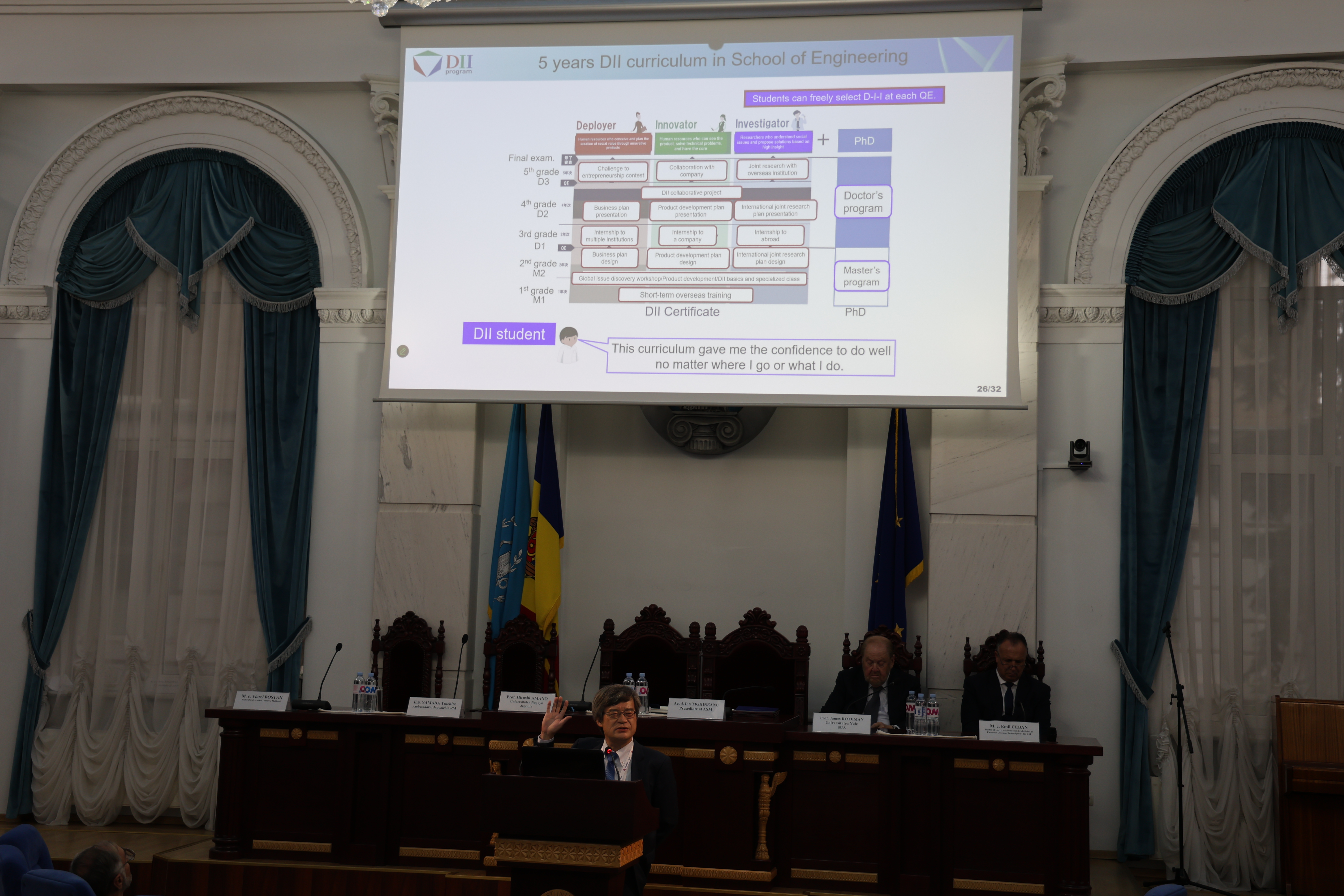 În dimineața zilei de 7 octombrie 2025, Prof. Hiroshi AMANO a deschis cea de-a 7-a Ediție a Conferinței Internaționale în domeniul Nanotehnologiilor și Ingineriei Biomedicale prezentând în cadrul primei ședințe plenare raportul cu genericul “De ce o universitate săracă a declanșat revoluția diodelor emițătoare de lumina albastră?”. Deschiderea Conferinței a avut loc în Sala Magna a Universității Tehnice a Moldovei.