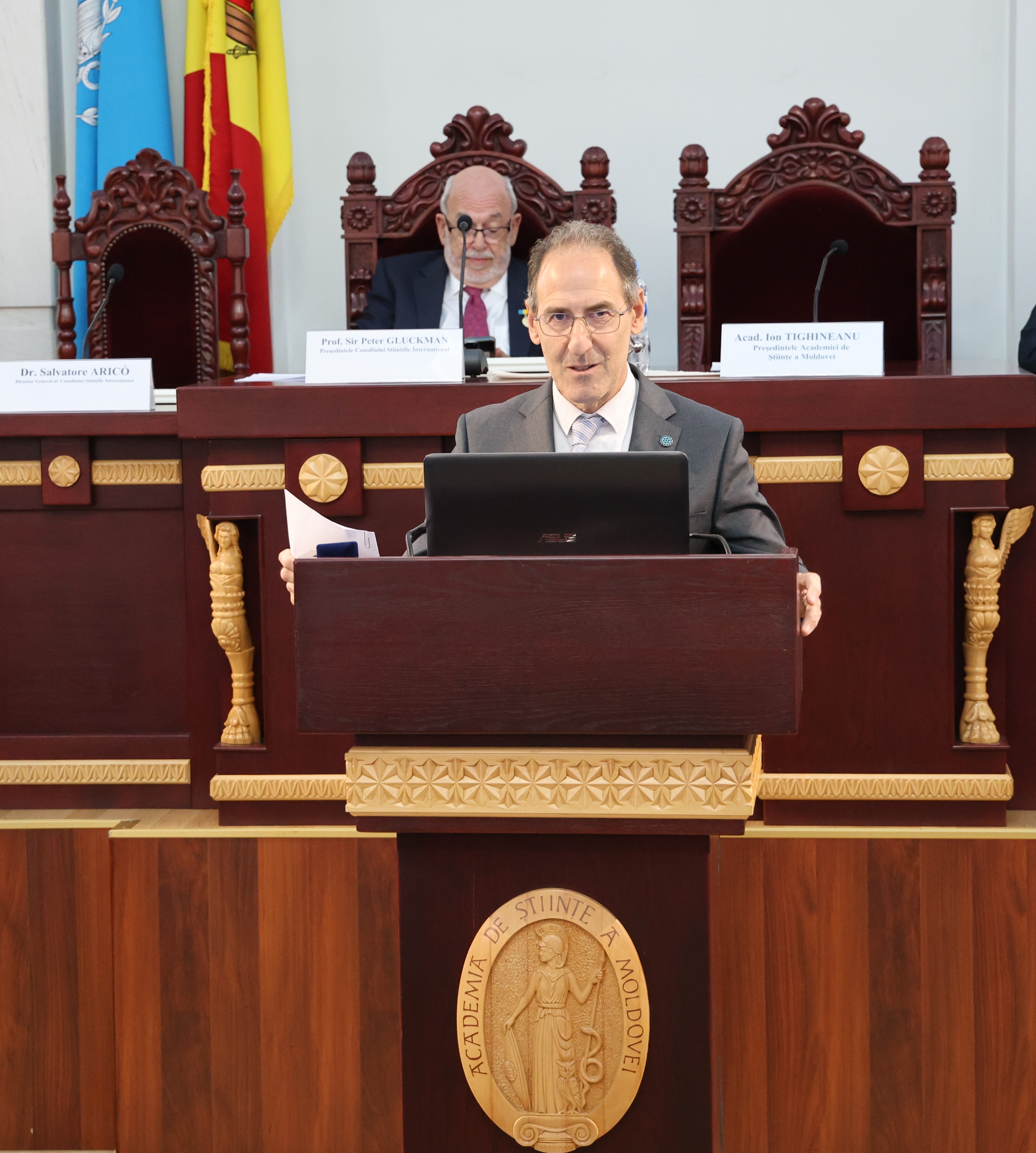 Încă o dată, vă mulțumesc mult pentru această oportunitate și doresc Academiei de Științe a Moldovei, Academiei Române și tuturor dumneavoastră mult succes în anii care vin. Consiliul Internațional pentru Știință este casa dumneavoastră, așa încât vă rog să contați pe noi în continuarea importantei dumneavoastră activități.
