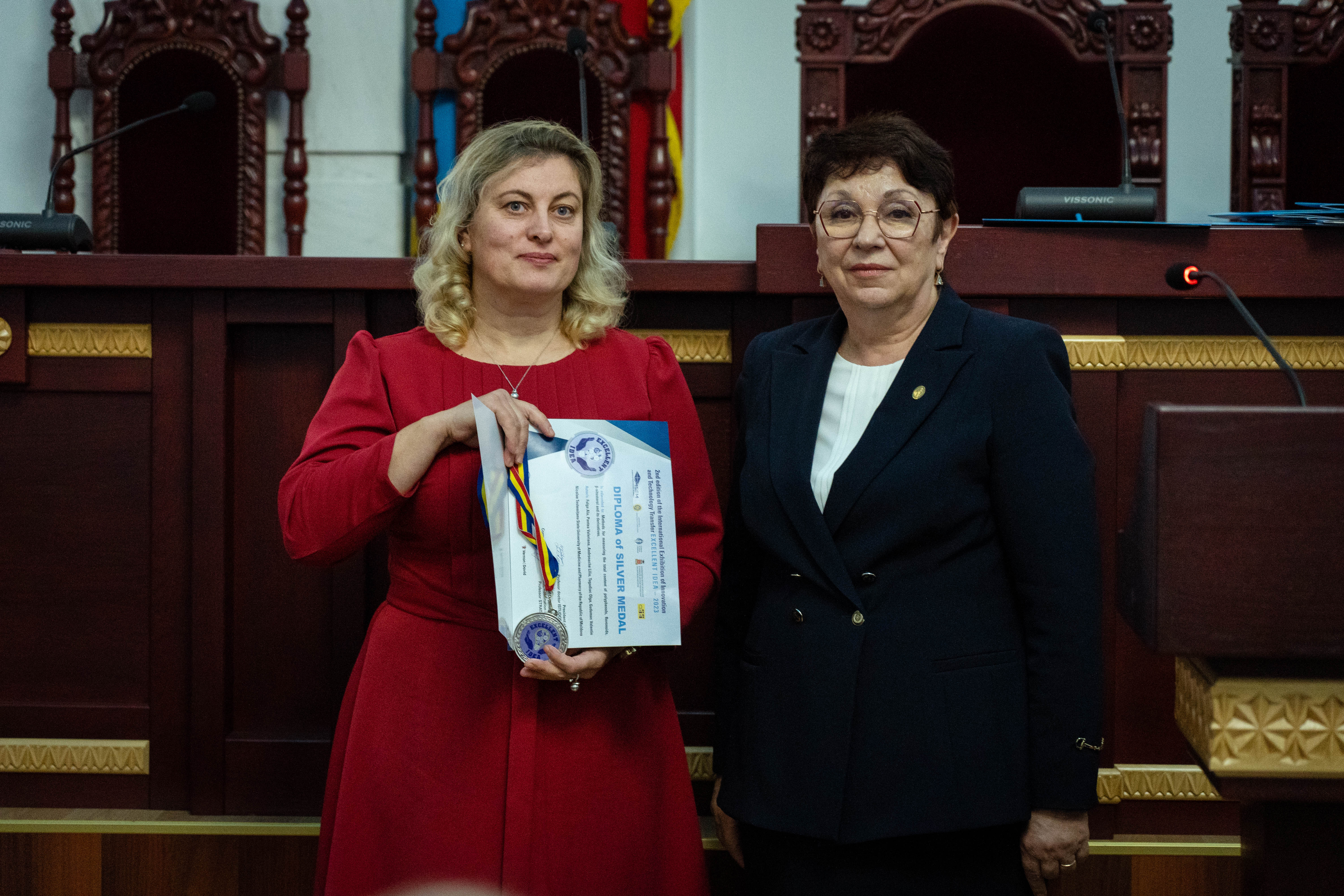 Premiul „Boris Lazarenko” în inginerie – dr. Ecaterina COVACI (Universitatea Tehnică a Moldovei), pentru ciclul de lucrări „Valorificarea potențialului de substanțe biologice active din materii prime vegetale”.