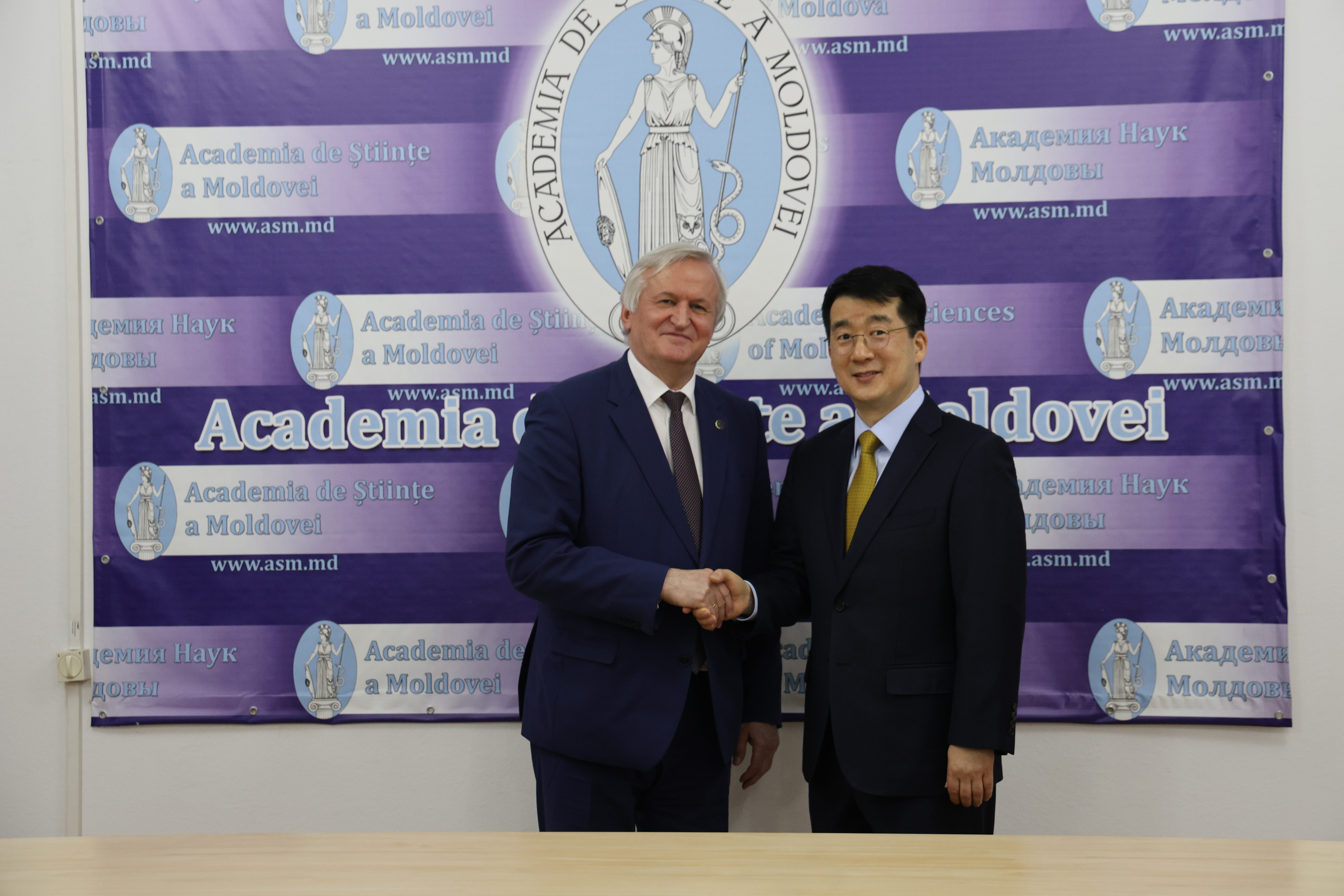 La 18 februarie, președintele Academiei de Științe a Moldovei (AȘM), acad. Ion Tighineanu, a avut o întrevedere cu Ambasadorul Republicii Coreea în Republica Moldova, cu reședința la Kiev, E.S. Park Kichang. Dialogul, facilitat de prezența reprezentanților Ministerului Afacerilor Externe al Republicii Moldova, se înscrie în eforturile de consolidare a cooperării academice și tehnologice dintre cele două state, într-un context global marcat de transformări digitale și de o dinamică accelerată a inovării. La întrevedere au participat, Consilierul ambasadei, dna Chansil Park, reprezentanți ai conducerii Academiei și ai Secțiilor de Științe, dna vicepreședinte, acad. Eva Gudumac, coordonator a Secției științe ale vieții, dl. vicepreședinte, membru corespondent Ion Hadârcă, Coordonatorul Secției științe sociale, economice, umanistice și arte, membru corespondent Veaceslav Ursachi, adjunct al coordonatorului Secției științe exacte și inginerești, Secretarul științific general al AȘM, dr. hab. Liliana Condraticova și dr. Tudor Braniște, șef al Secției management academic și relații externe, precum și reprezentanții Ministerul Afacerilor Externe al RM, dl. Ion Bulmaga, consilier, Secţia tratate bilaterale și Ion Ionesie, atasat, Secţia Asia, Africa, Orientul Mijlociu şi Pacific.