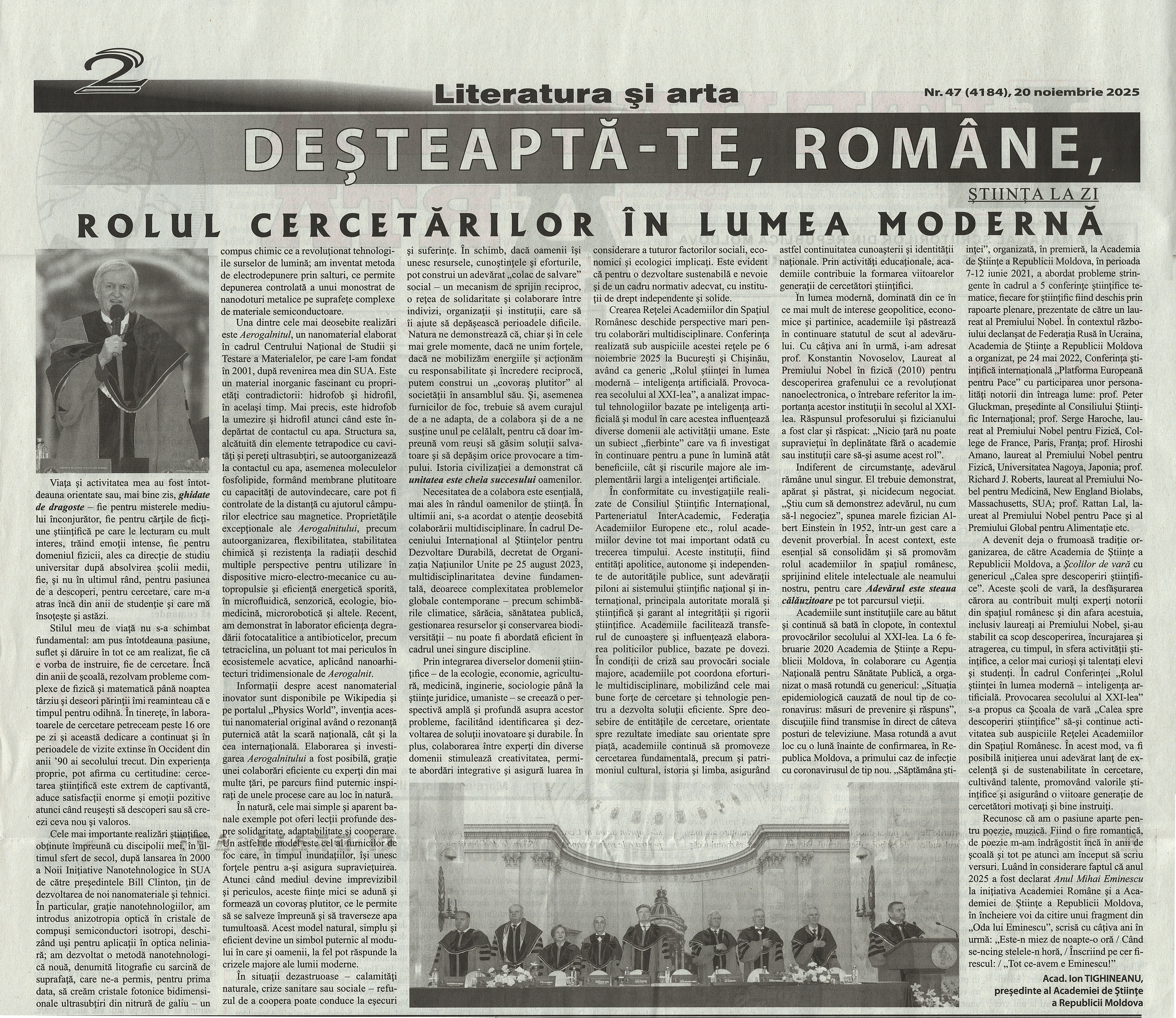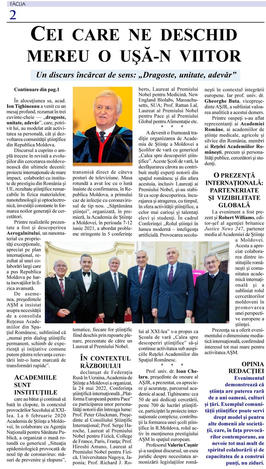 Gala Academiei de Științe Juridice din România, ediția anului 2025, a avut ecouri puternice în spațiul științific românesc. Astfel, în nr. 43(3967) din 21 noiembrie curent al săptămânalului de informare a pedagogilor „Făclia”, a fost publicat un material amplu elaborat de echipa redacțională. Vă îndemnăm să luați cunoștință cu textul articolului „Cei care ne deschid mereu o ușă-n viitor”. Redacția săptămânalului „Făclia” a punctat cele mai importante momente de la Gala AȘJR, precum și din discursul de recepție „Dragste. Unitate. Adevăr” al acad. Ion Tighineanu.