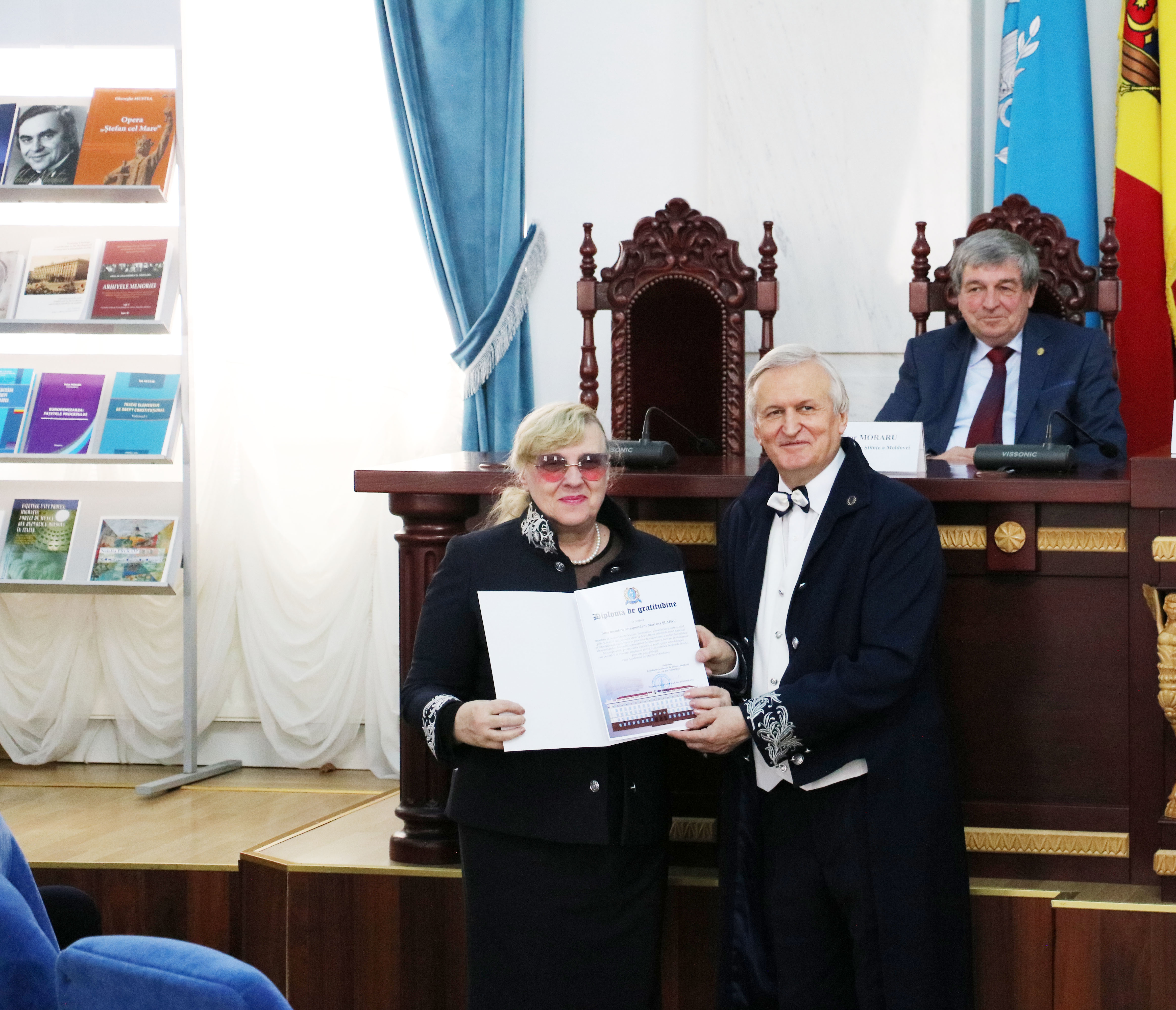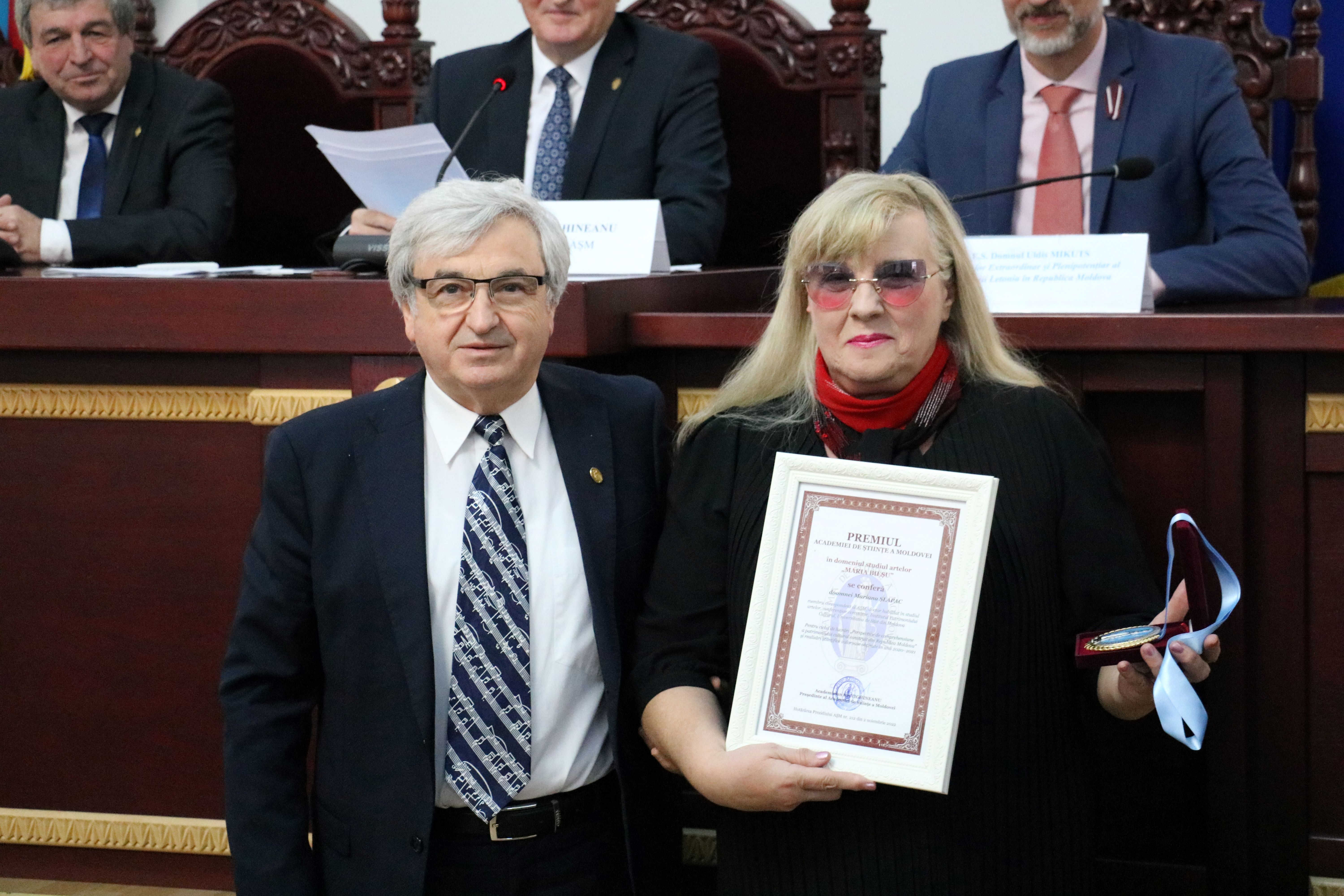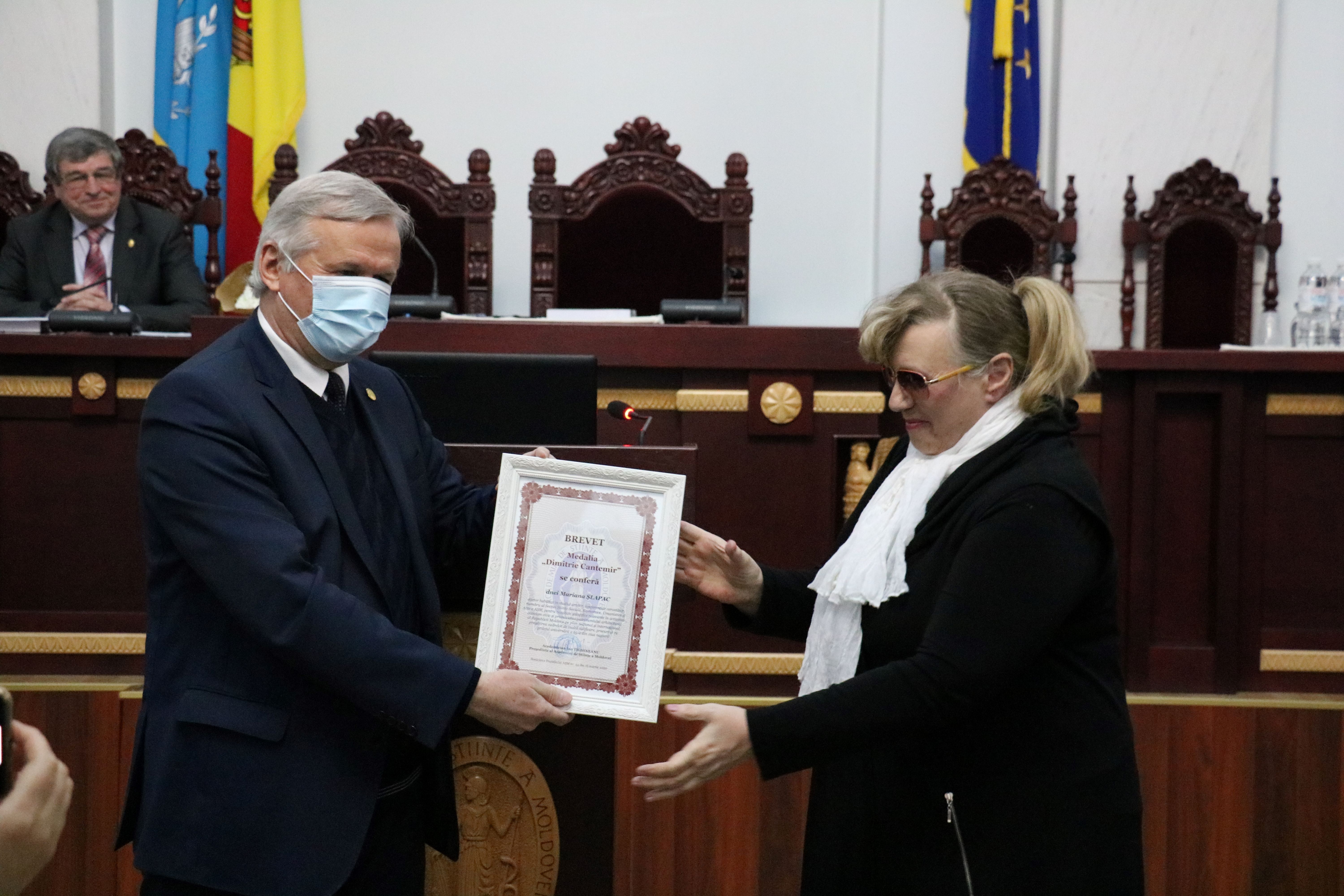 Vasta Dumneavoastră activitate științifică și civică a fost apreciată prin cele mai înalte distincții de stat și academice, printre ele se numără Premiul „Mihail Kogălniceanu” al Academiei Române și Premiul în studiul artelor „Maria Bieșu” al Academiei de Științe a Moldovei, oferite în semn de recunoaștere a meritelor Dumneavoastră deosebite.