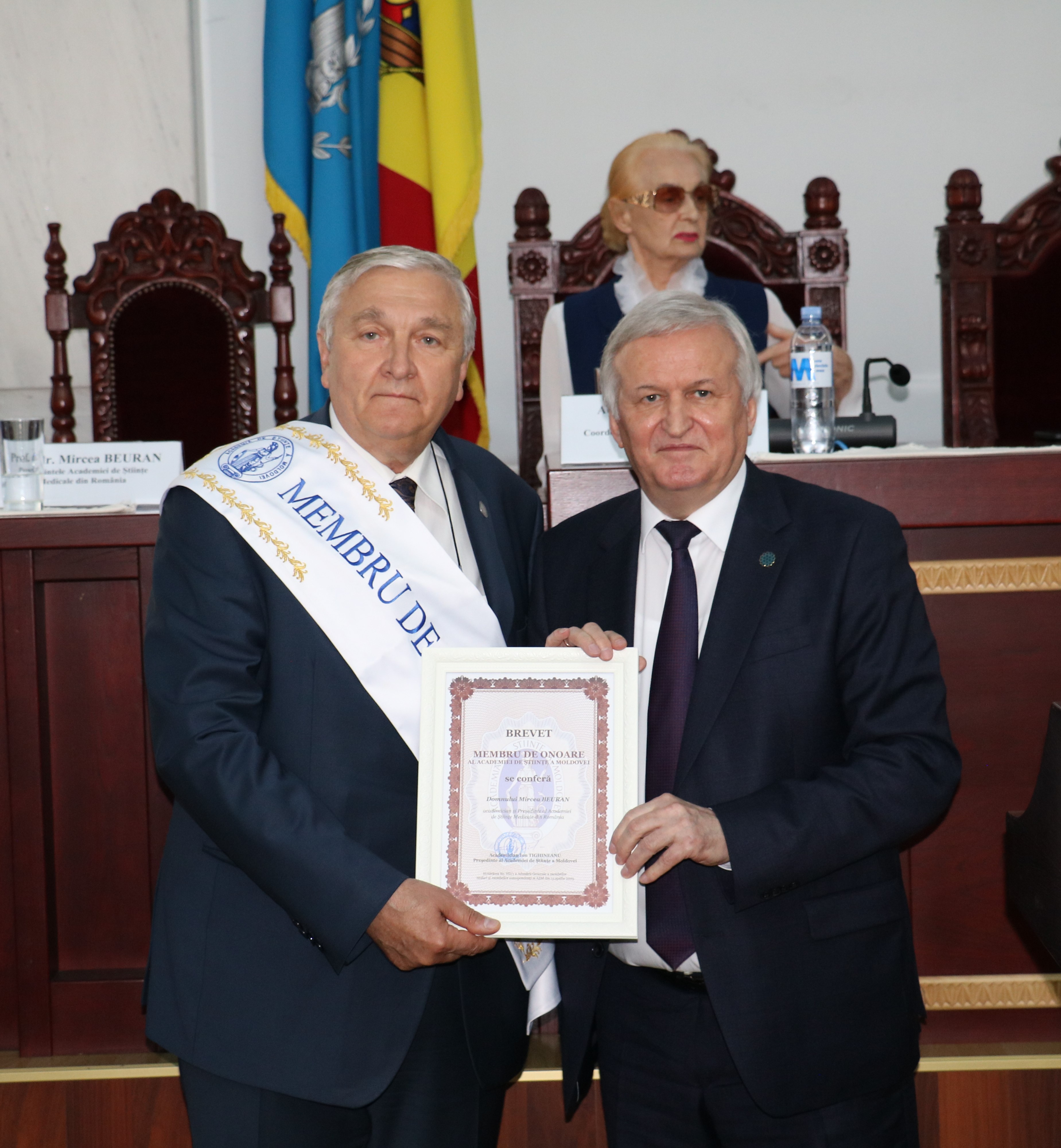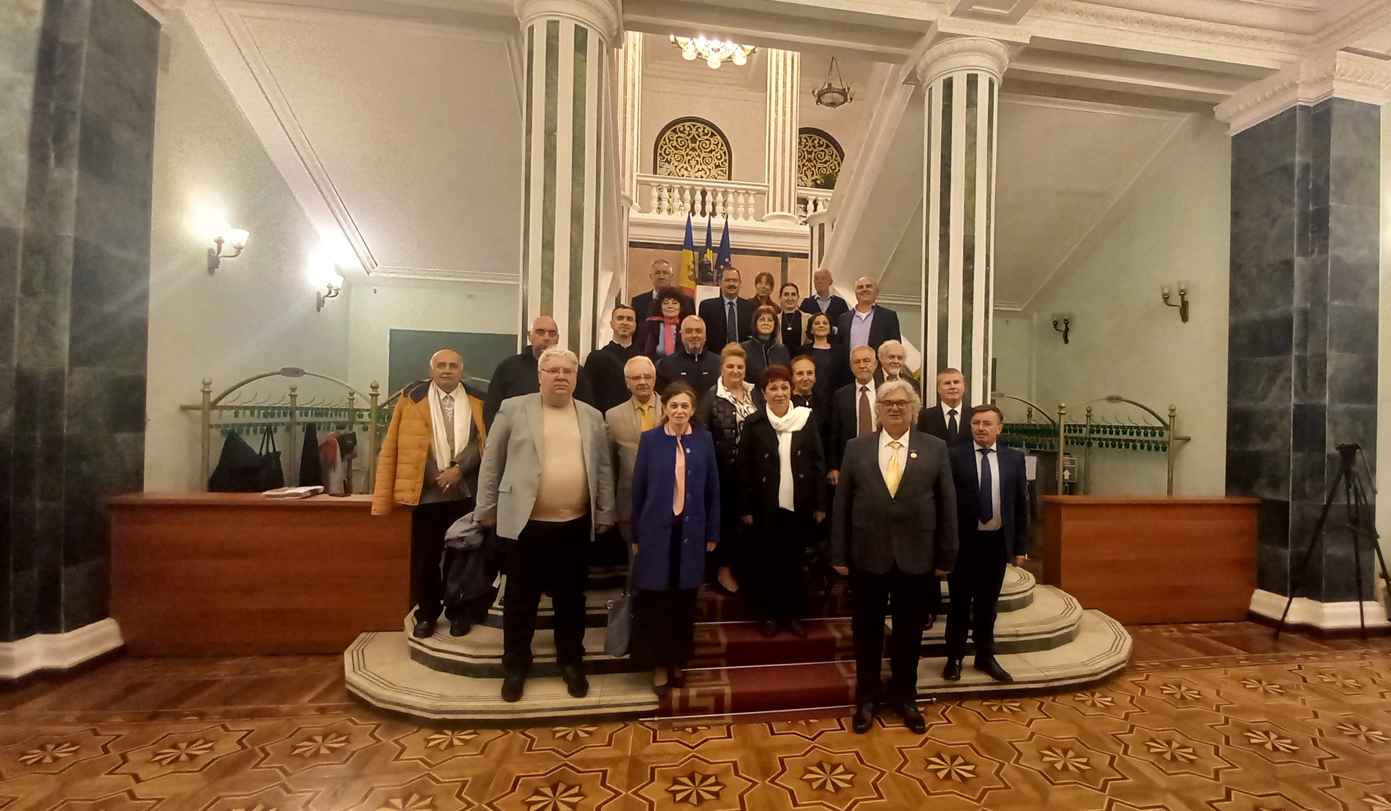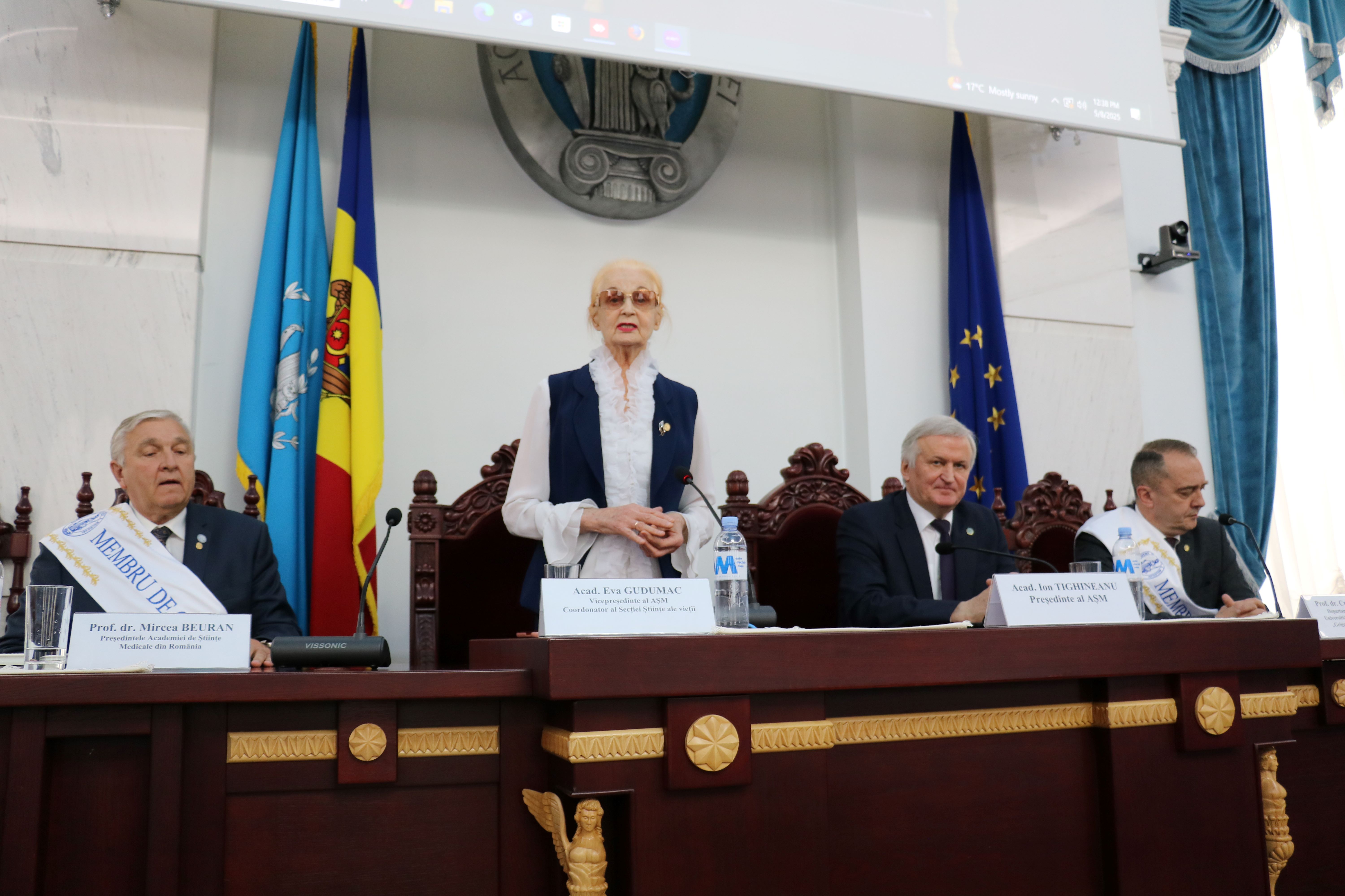 Întreaga noastră gratitudine se îndreaptă către Academia Română, care reprezintă un sprijin constant pentru Academia de Științe a Moldovei, contribuind la fortificarea spațiului științific și cultural românesc comun. Anul 2025 se conturează drept un an al realizărilor comune pe platforma de colaborare dintre Republica Moldova și România. Menționăm, în acest sens, manifestările științifico-culturale organizate împreună de cele două academii – o apropiere fără precedent între două academii-surori, care a condus la inițiativa declarării anului 2025 drept „Anul Mihai Eminescu” și la sărbătorirea împreună a Zilei Naționale a Culturii, Zilei Europei, Zilei Limbii Române, precum și la organizarea Congresului Mondial al Eminescologilor.