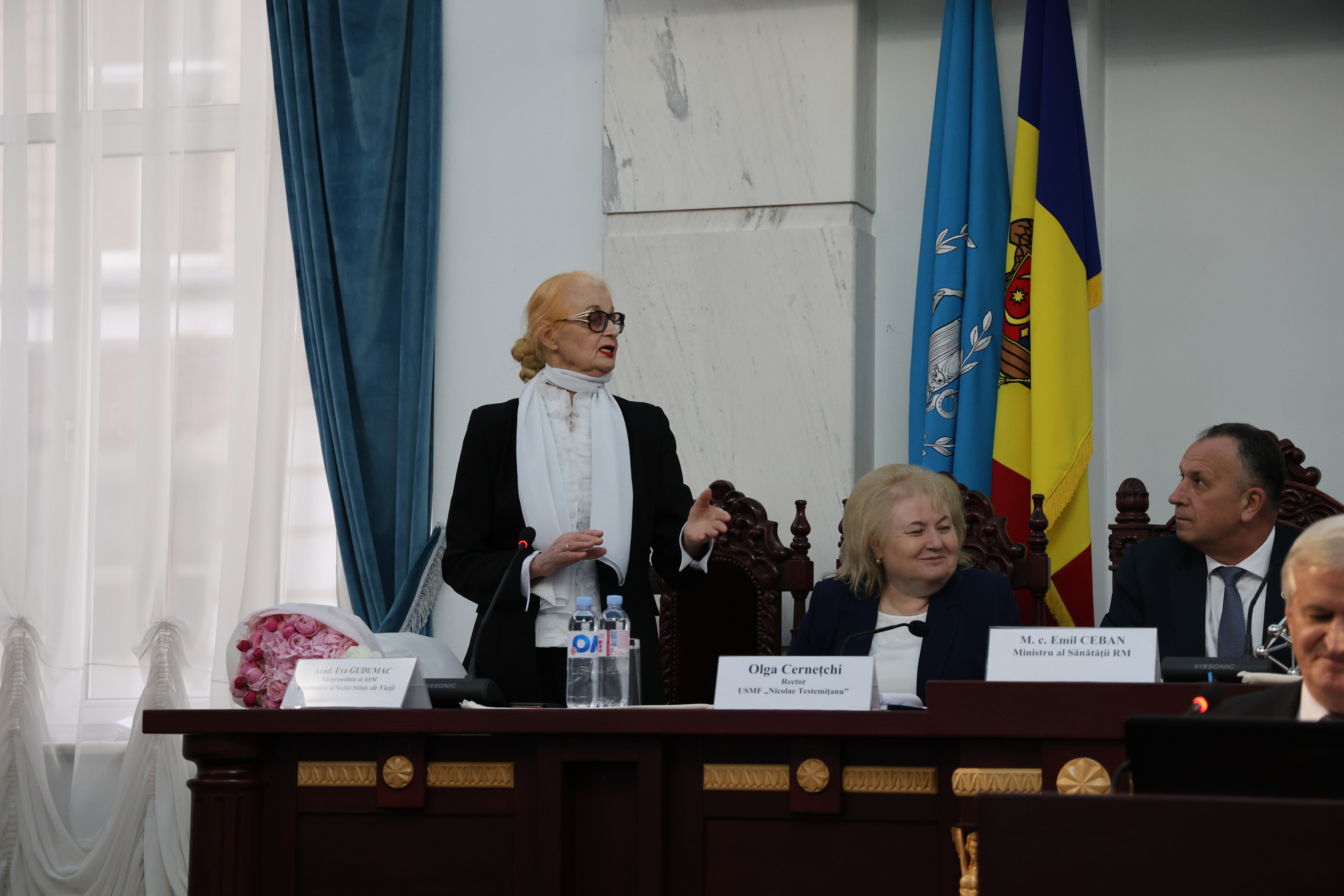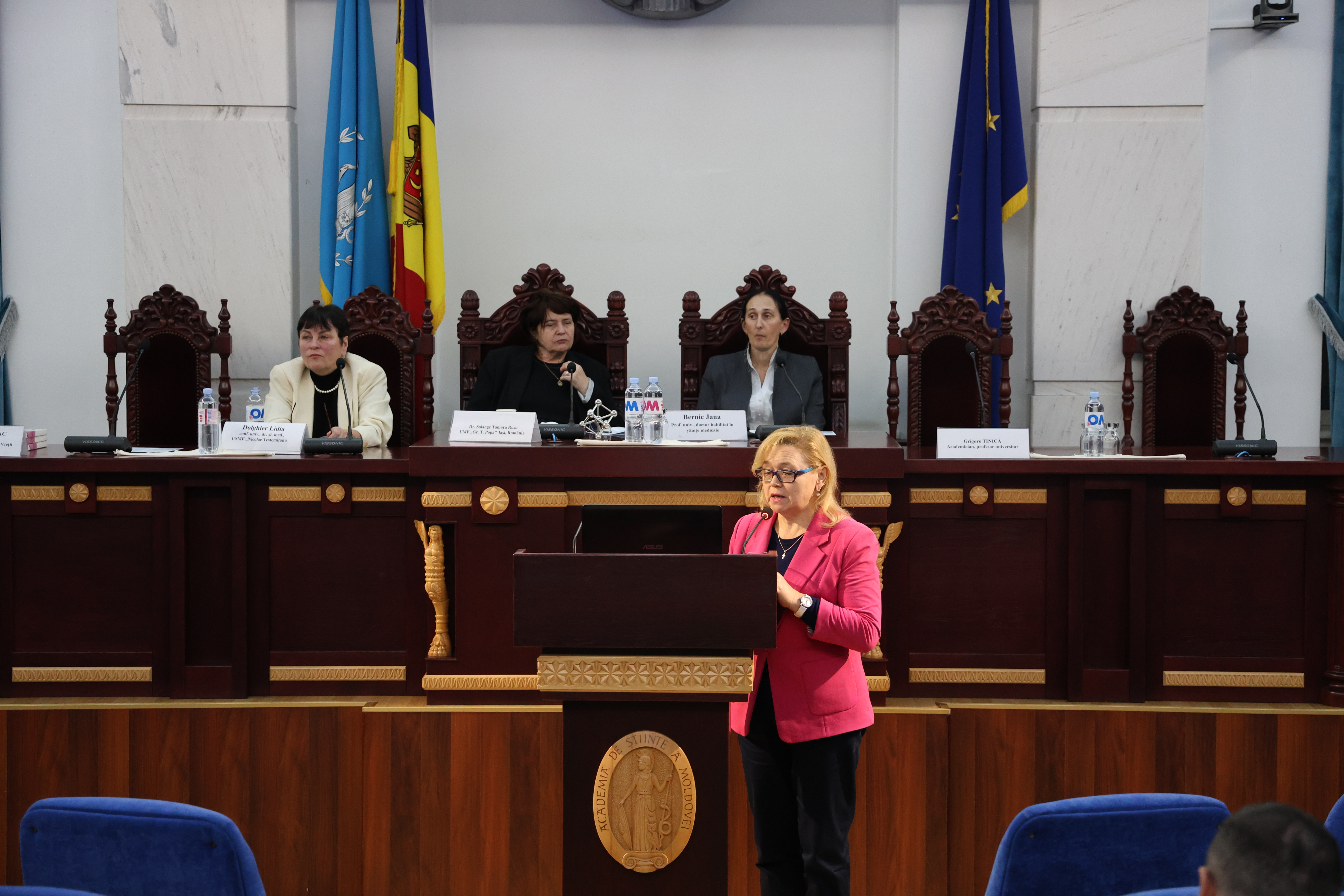 În continuare, dr. hab. Olga CERNEȚCHI, rector interimar al USMF „Nicolae Testemițanu”, și doamna Jana CHIHAI, prorector pentru activitate de cercetare și inovare la USMF „Nicolae Testemițanu”, au menționat, în mesajele de salut, importanța conferinței pentru comunitatea academică, reiterând că acad. Natalia GHEORGHIU reprezintă un model de excelență în cercetare.