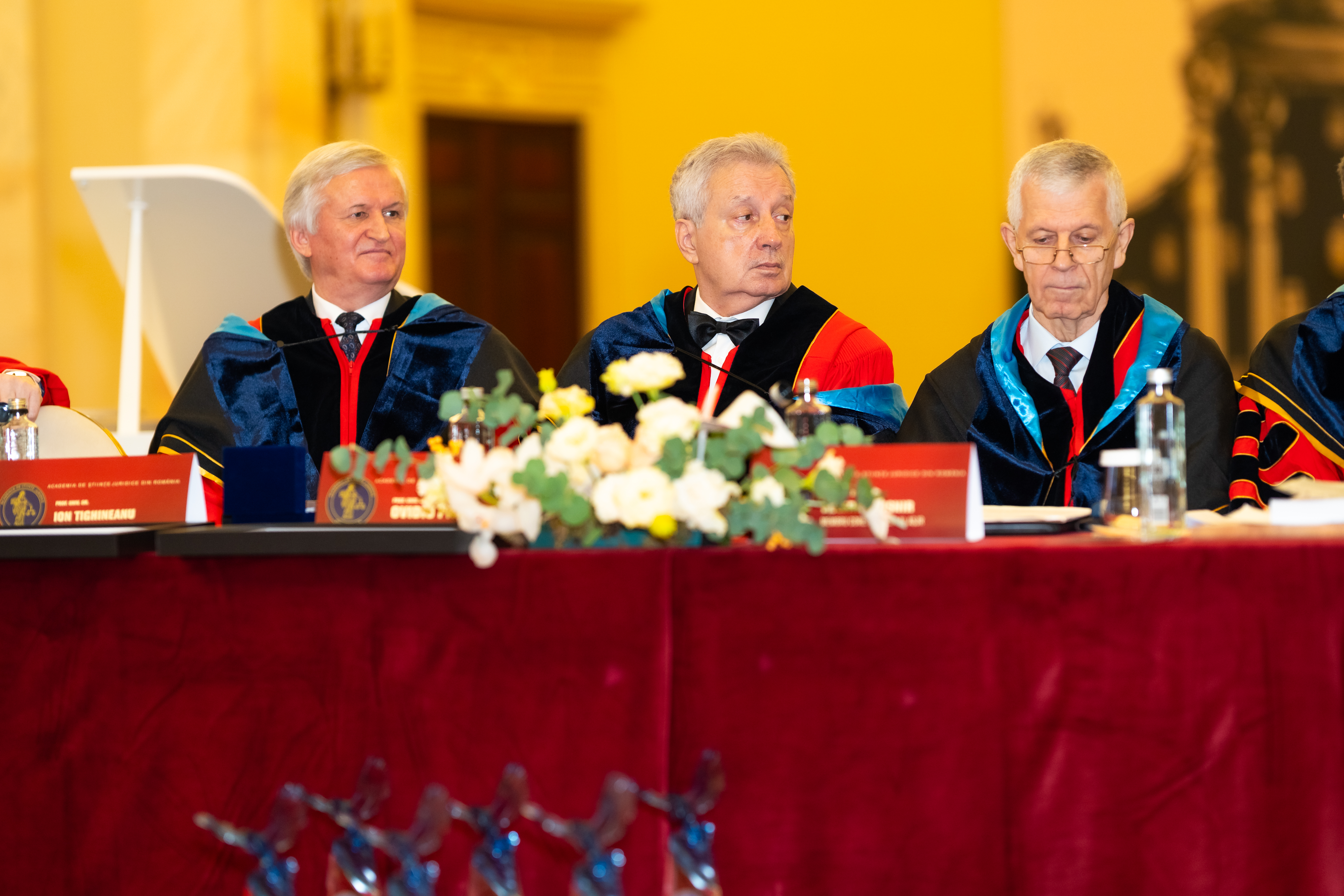 Un moment special a fost discursul de răspuns prezentat de Prof. univ. dr. Ioan CHELARU, președinte de onoare al Academiei de Științe Juridice din România și președinte al Uniunii Juriștilor din România, care a prezentat cu lux de amănunte activitatea științifică și managerială a acad. Ion Tighineanu.