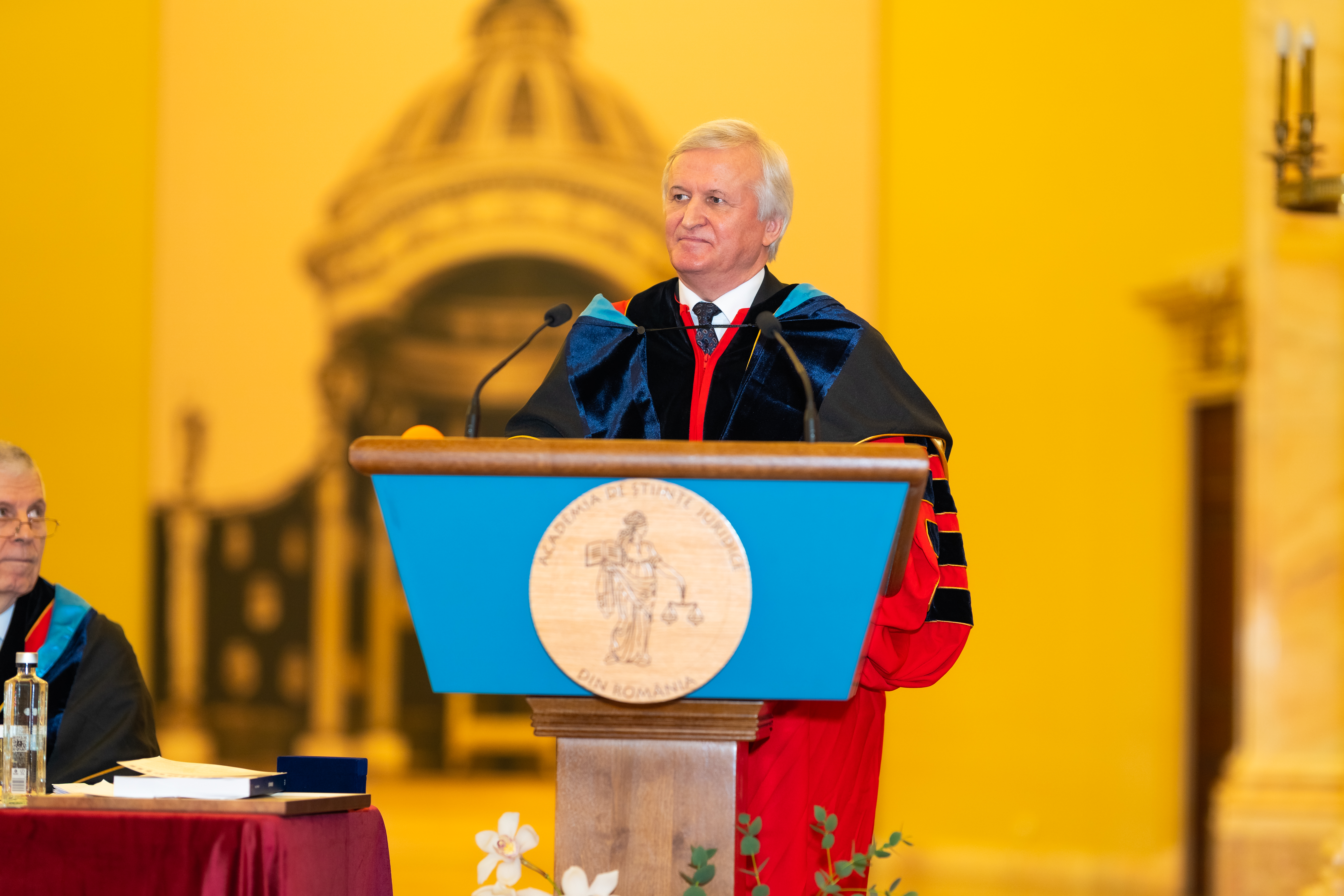 În continuarea ceremoniei, prof. univ. dr. Valeriu Cușnir, membru corespondent al Academiei de Științe a Moldovei, a susținut discursul său cu ocazia alegerii în calitate de membru corespondent al AȘJR întitulat „De la o știință a dreptului și două legislații, la un drept și o legislație unitară”. Discursul oficial de răspuns a fost rostit de Prof. univ. dr. Gheorghe Buta, vicepreședinte al Academiei de Științe Juridice din România.