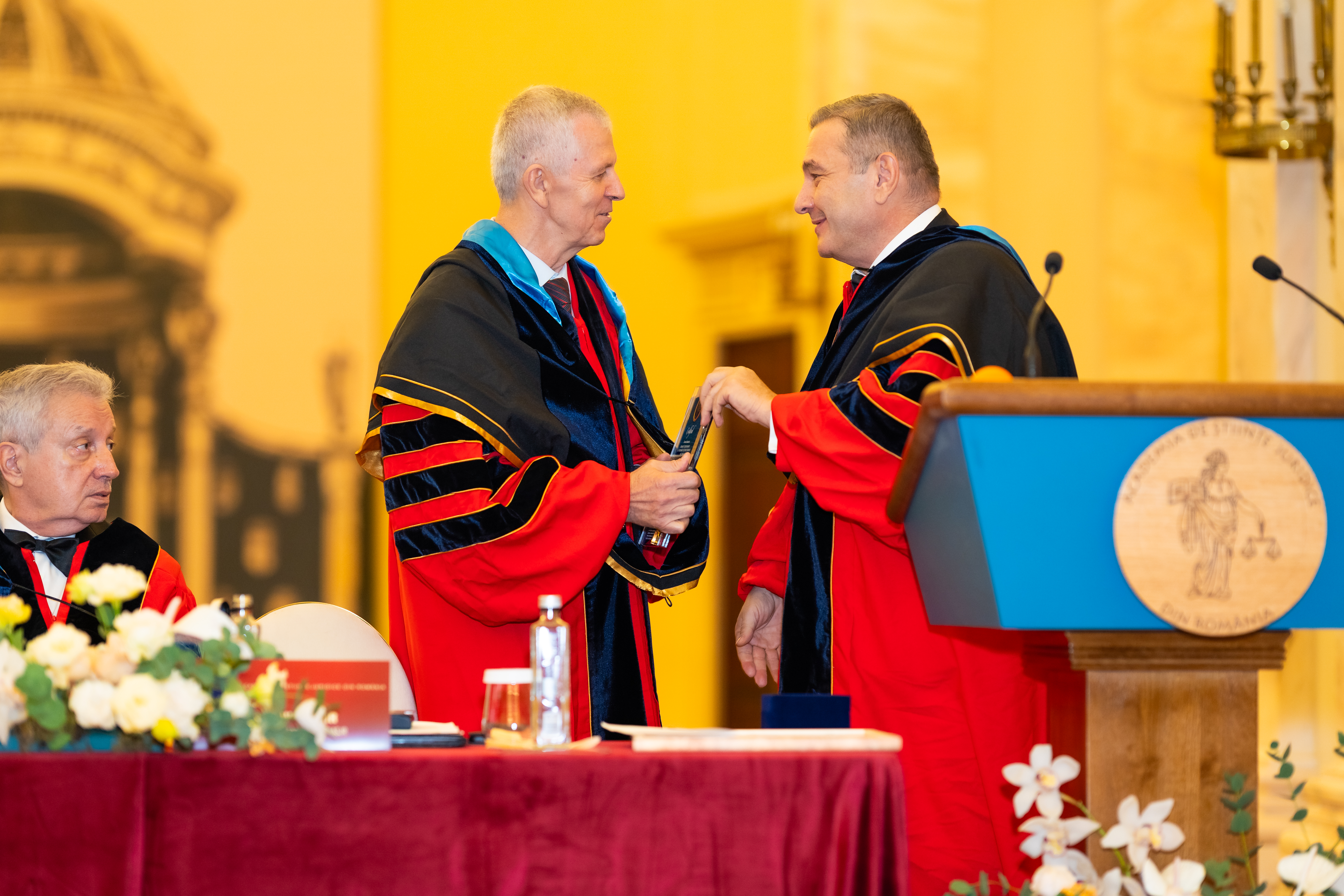 În cadrul Galei Academiei de Științe Juridice din România, desfășurată vineri, 14 noiembrie 2025, în Sala Tronului a Palatului Regal din București, academicianul Ion TIGHINEANU, Președintele Academiei de Științe a Moldovei, și membrul corespondent Valeriu CUȘNIR au fost onorați cu titluri deosebite de recunoaștere științifică.