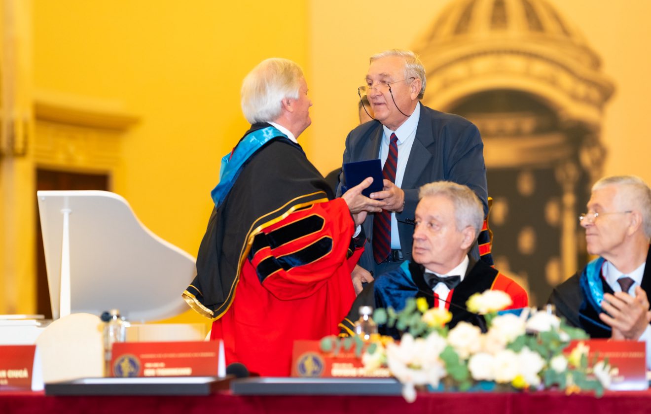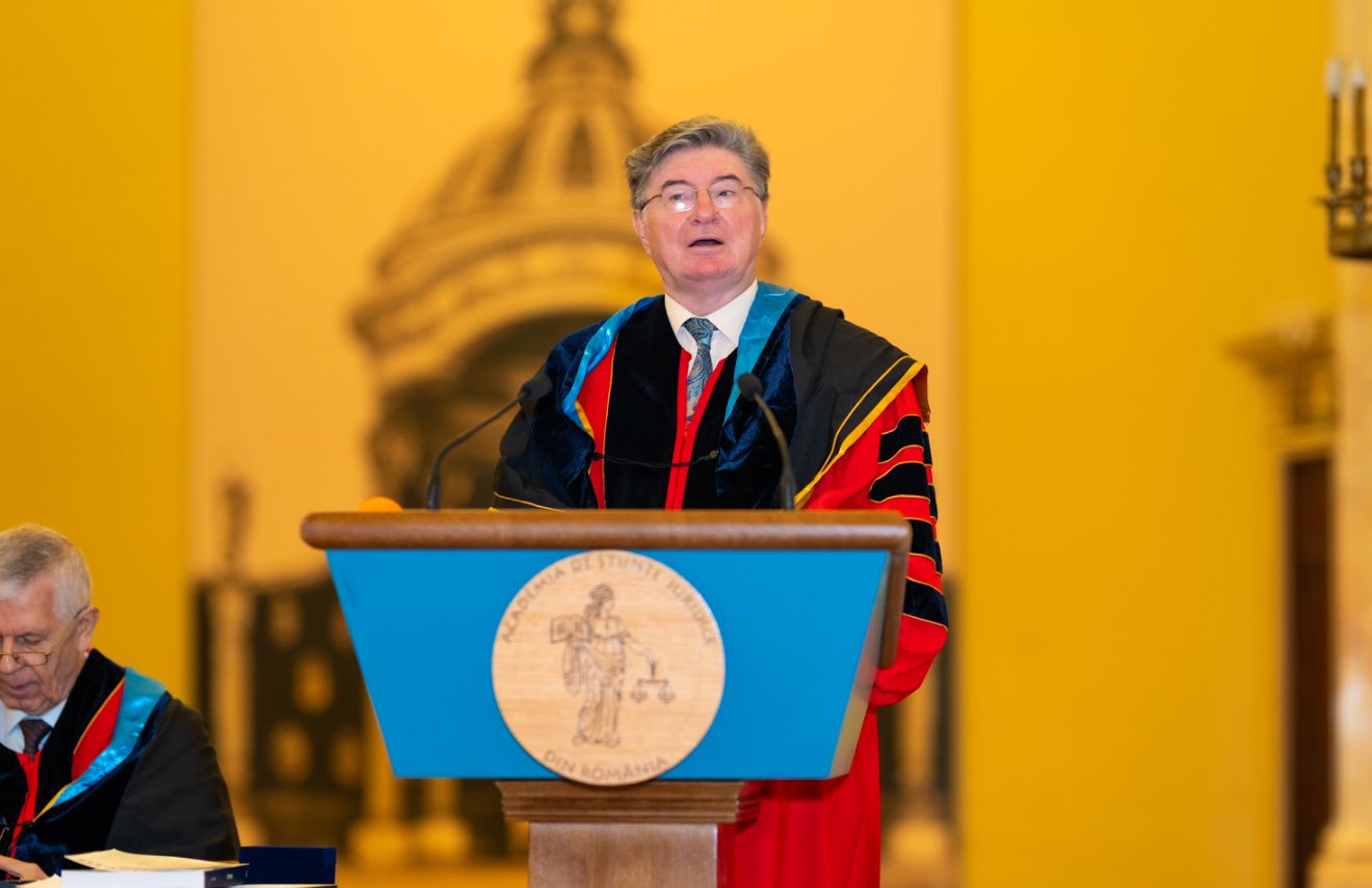 În cadrul Galei Academiei de Științe Juridice din România, desfășurată vineri, 14 noiembrie 2025, în Sala Tronului a Palatului Regal din București, academicianul Ion TIGHINEANU, Președintele Academiei de Științe a Moldovei, și membrul corespondent Valeriu CUȘNIR au fost onorați cu titluri deosebite de recunoaștere științifică.