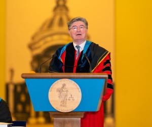 Ceremonia solemnă a fost deschisă prin alocuțiunea susținută de Prof. univ. dr. Liviu Bogdan CIUCĂ, președintele AȘJR. Președintele CIUCĂ a menționat importanța rădăcinilor și a reperelor istorice, care stau la baza dezvoltării țării, astfel amintind de fondatorii Academiei de Științe Juridice din Romania și personalitățile remarcabile din domeniul dreptului.