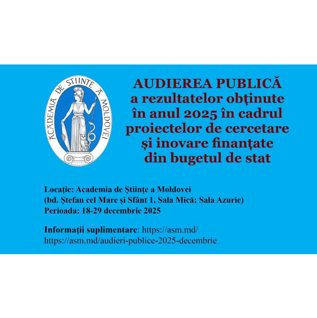 Graficul desfășurării audierilor publice și rezumatele proiectelor audiate sunt disponibile pe pagina web a AȘM (https://asm.md/audieri-publice-2025-decembrie).