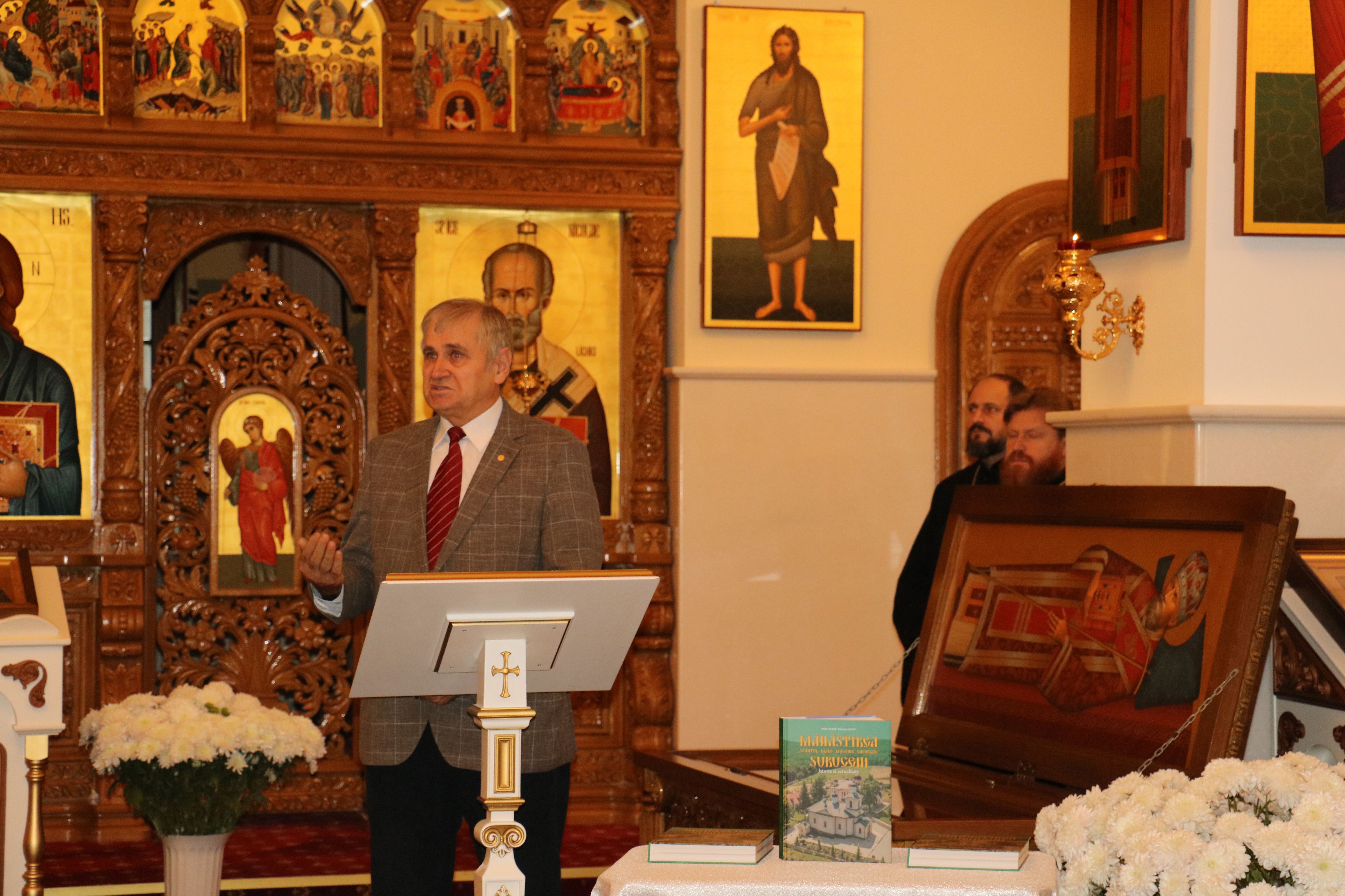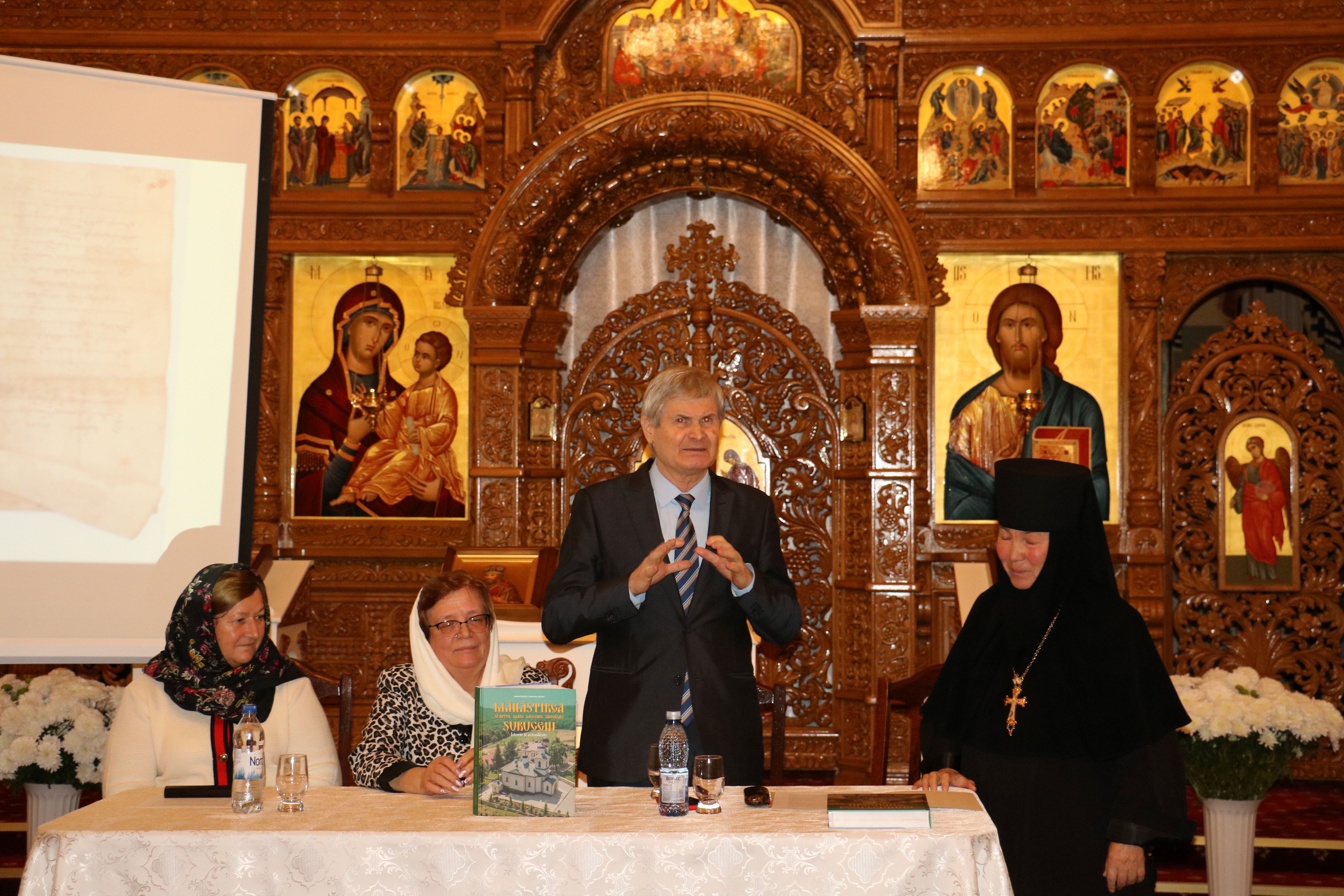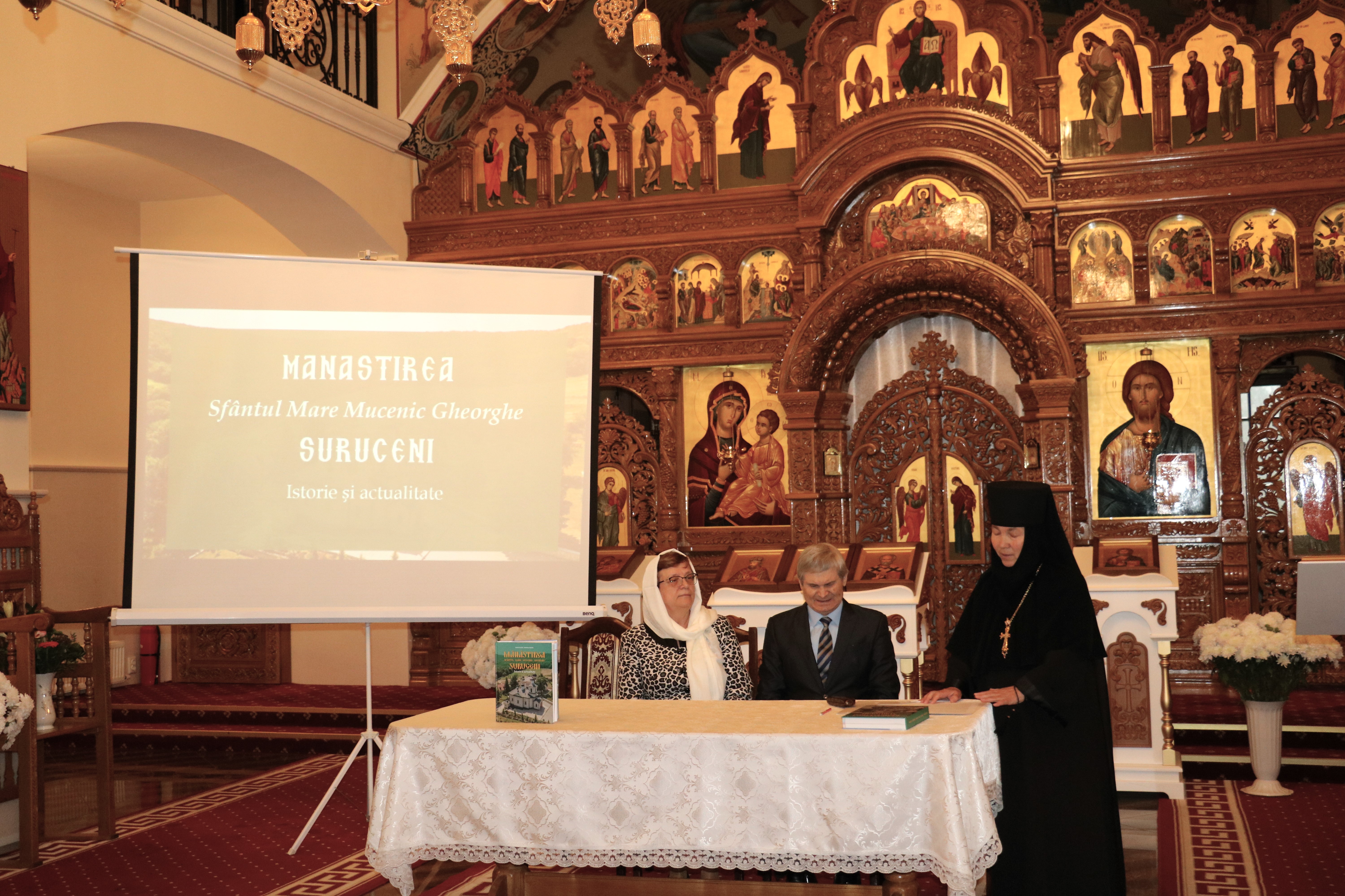 Evenimentul a fost deschis de egumena Epistemia (Goncearenco), stareța mănăstirii Sfântul Mare Mucenic Gheorghe, cea care a și redactat textul monografiei. Domnia sa a subliniat că cei 240 de ani de existență ai mănăstirii Suruceni reprezintă o „istorie vie a credinței, purtată prin jertfa și statornicia generațiilor de monahi”. Maica stareță Epistemia a mulțumit autorilor, maicilor și preoților slujitori pentru susținerea și munca lor de fiecare zi, precum și celor care au sprijinit editarea cărții în 1000 de exemplare, exprimând recunoștința față de doamna Ana Cecan, unul dintre ctitorii mănăstirii și cea care a moderat manifestarea științifico-spirituală.